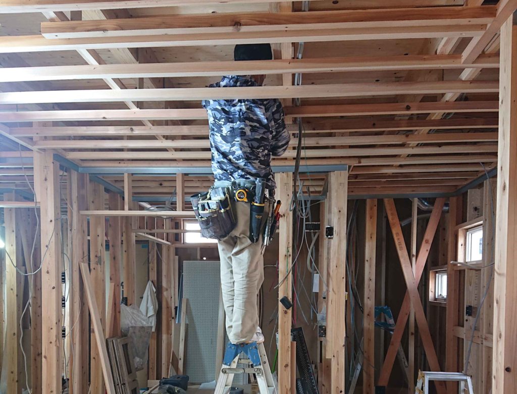 東区K様邸の幸せづくり状況です♪ ボード貼りが進んでいます! 断熱材を吹き付け、電気配線をなどを行った後にボードを打ち付ける工事を行います! プラスターボードは、丈夫で断熱、遮音性に優れており、内壁材として...