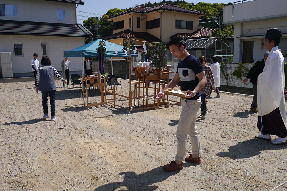 四方祓いでは、工事の無事安全を祈って、敷地の四隅を酒、塩で祓い清めます!
