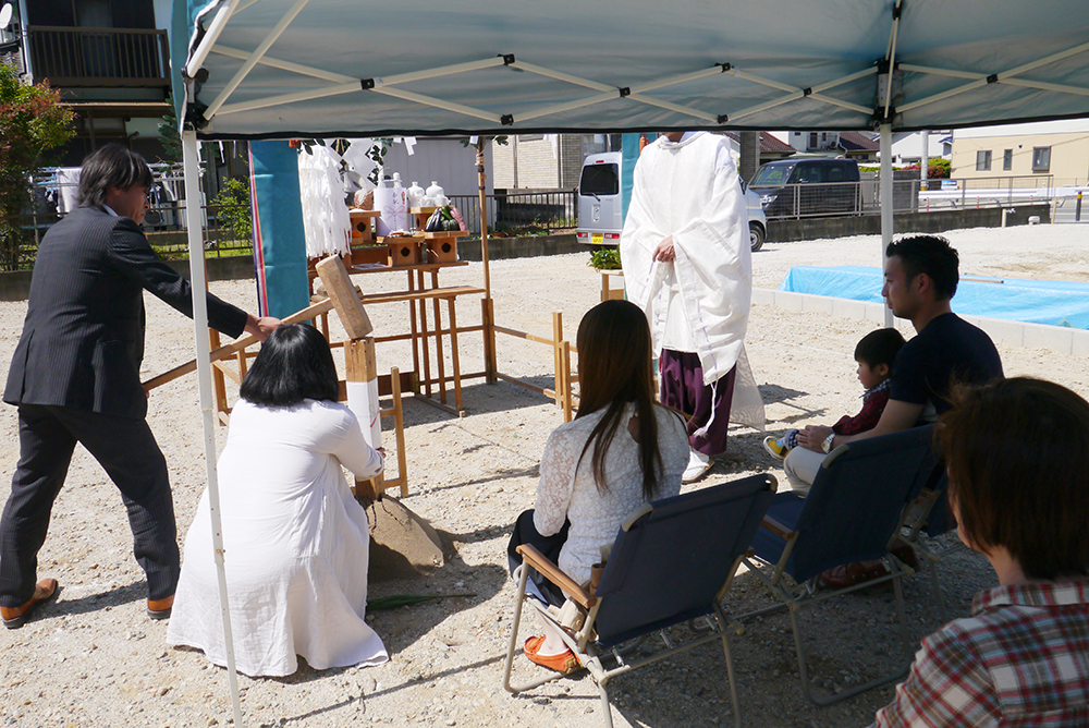 地鎮祭とは、土木工事や建築工事を始める前に行い、その土地の氏神様を鎮め、土地を利用させてもらうことの許しを得るための祭事です!