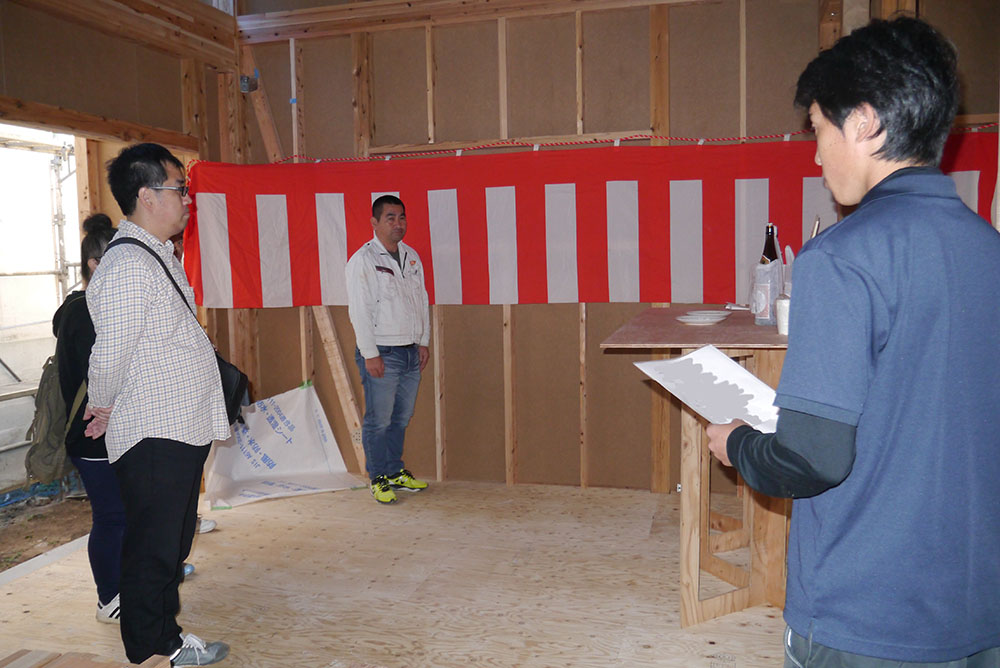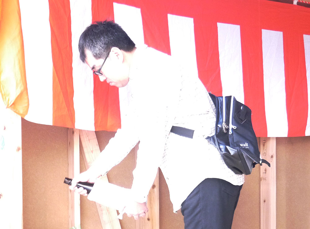 四方祓いは、建物の四隅の柱を順番に酒、米、塩を撒いて祓い清め、工事の安全を祈念するために行います!