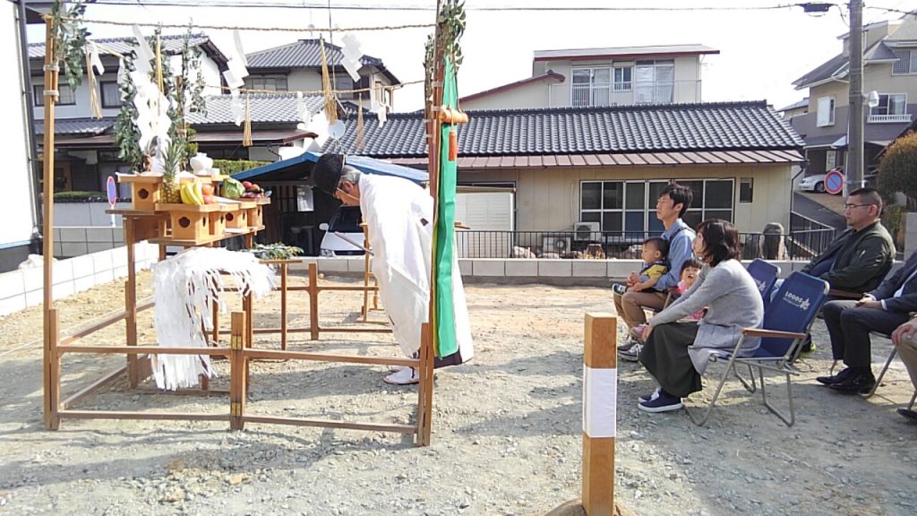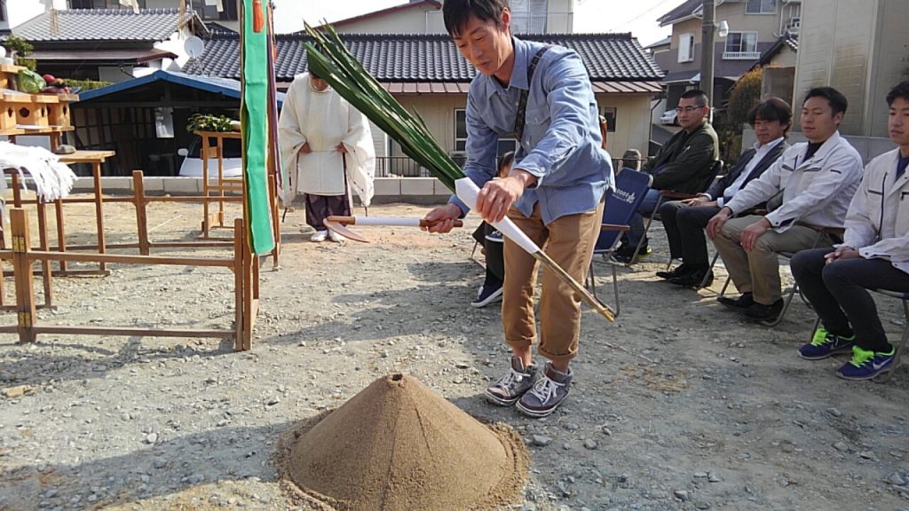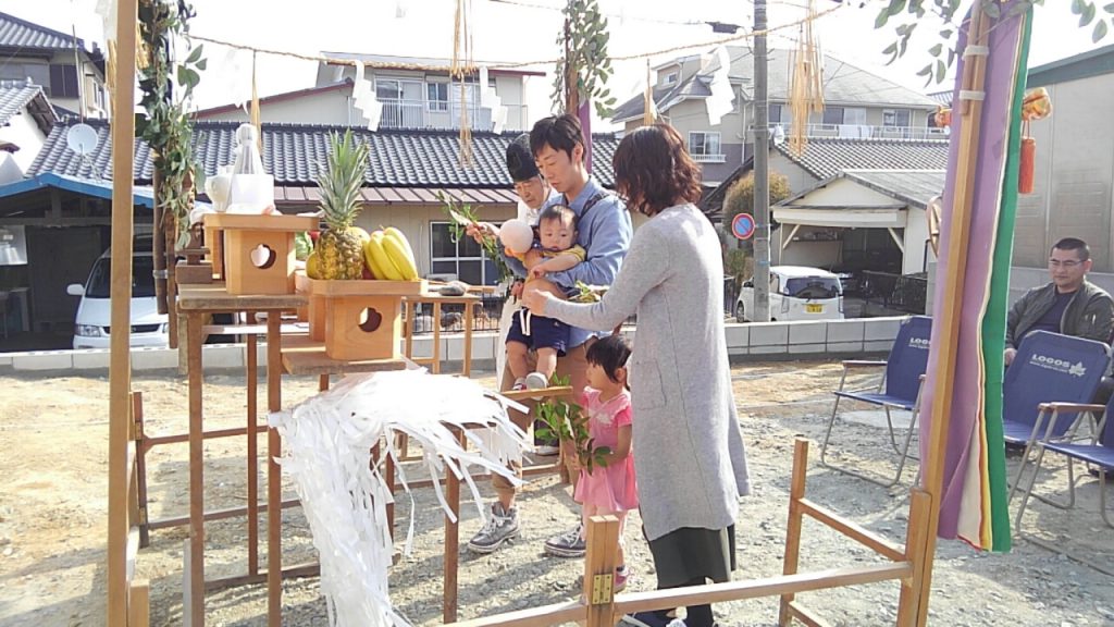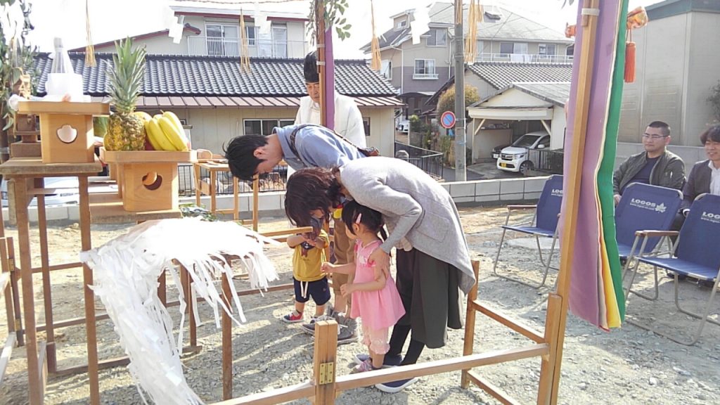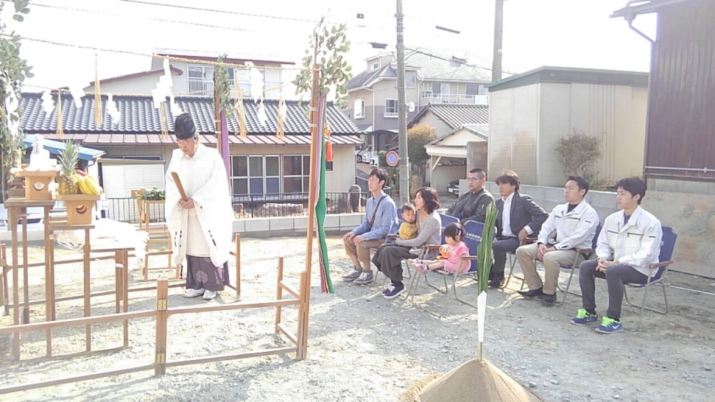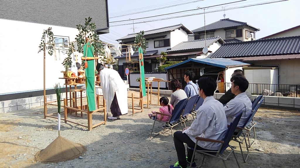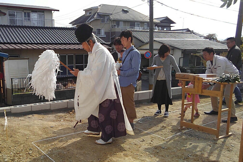 地鎮祭とは、建築工事などを始める前にその土地の神様(氏神)を鎮め、土地を利用させてもらう事の許しを得る行事です!