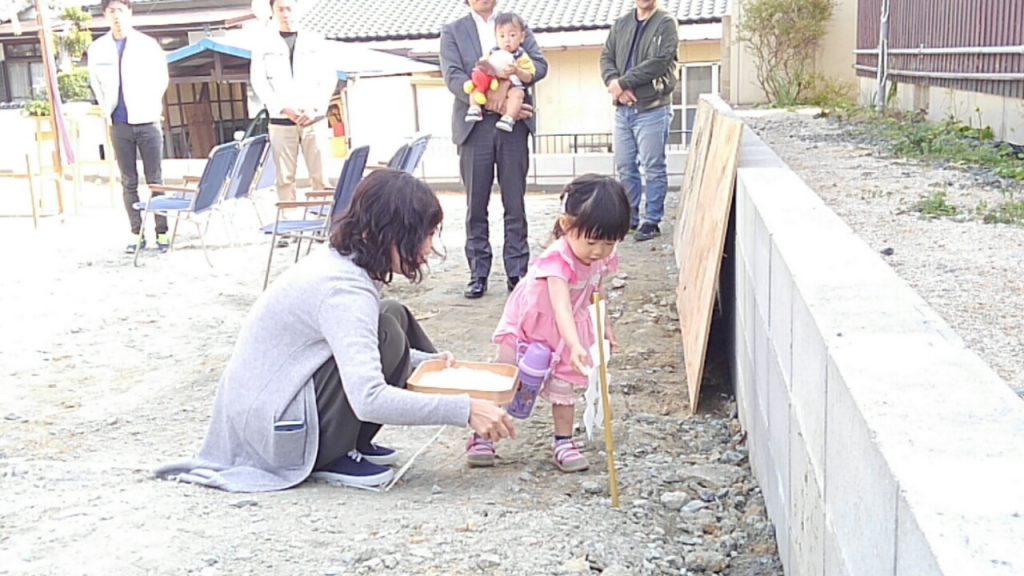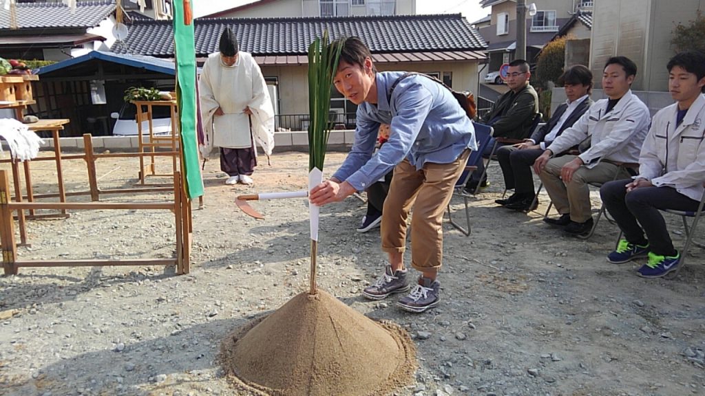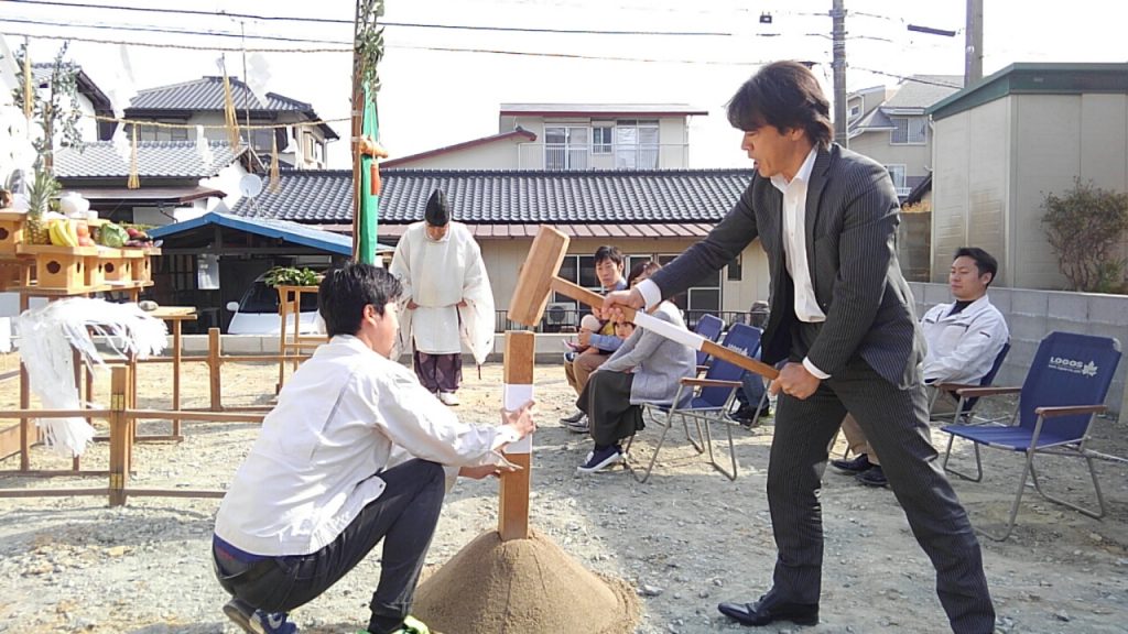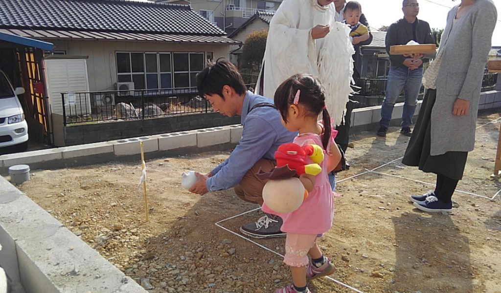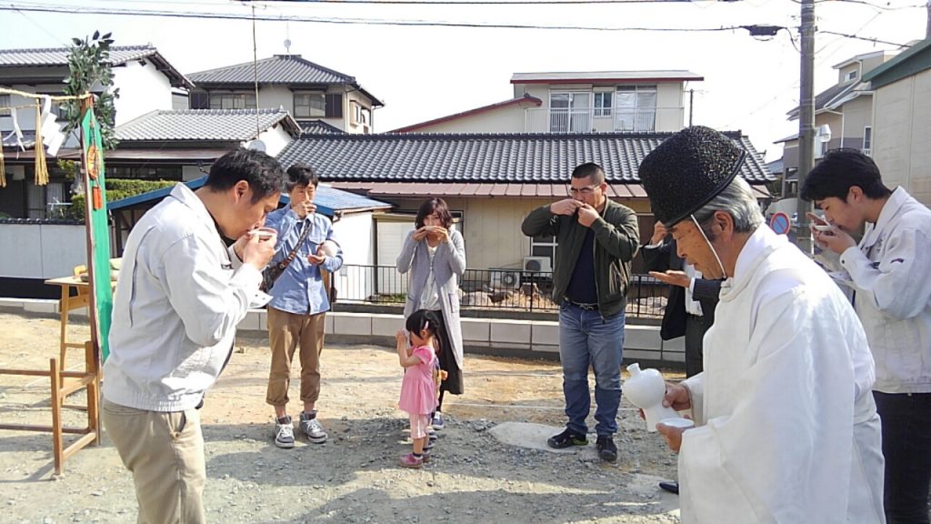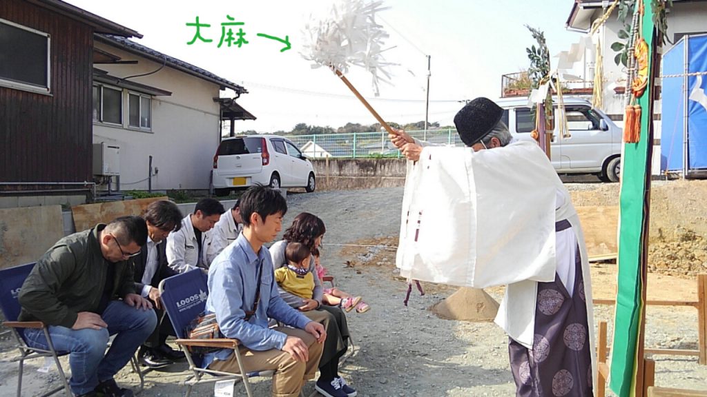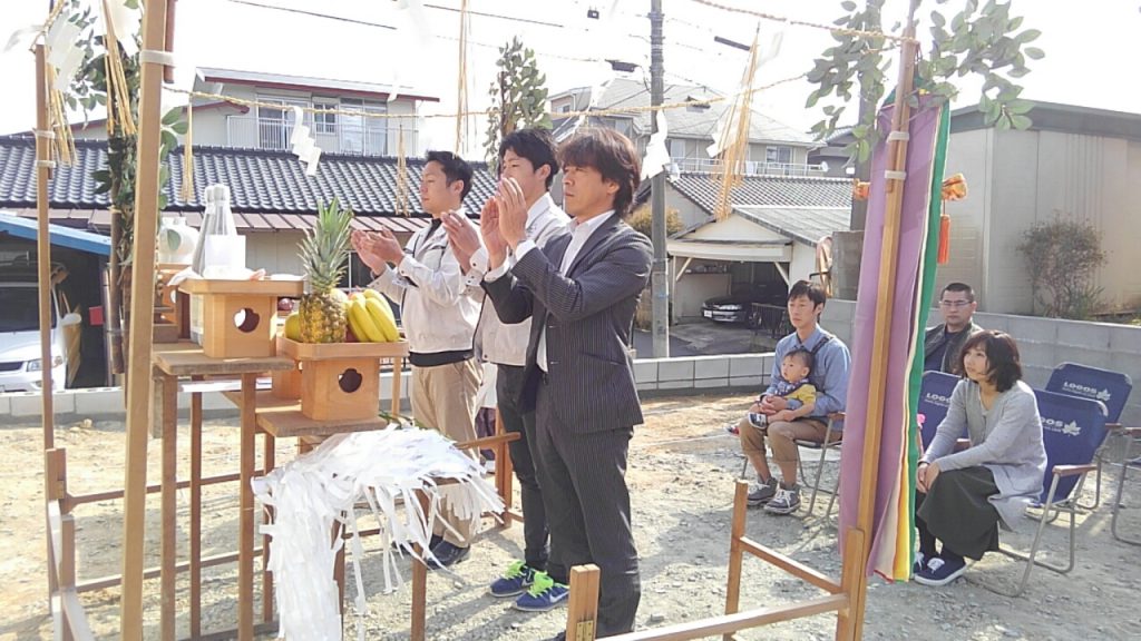 地鎮祭とは、建築工事などを始める前にその土地の神様(氏神)を鎮め、土地を利用させてもらう事の許しを得る行事です!
