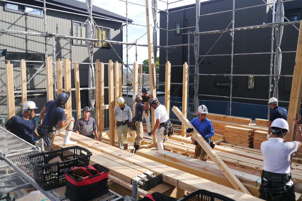 大工さんたちは息の合った連携作業を見せてくれます!