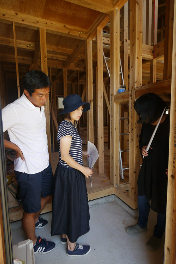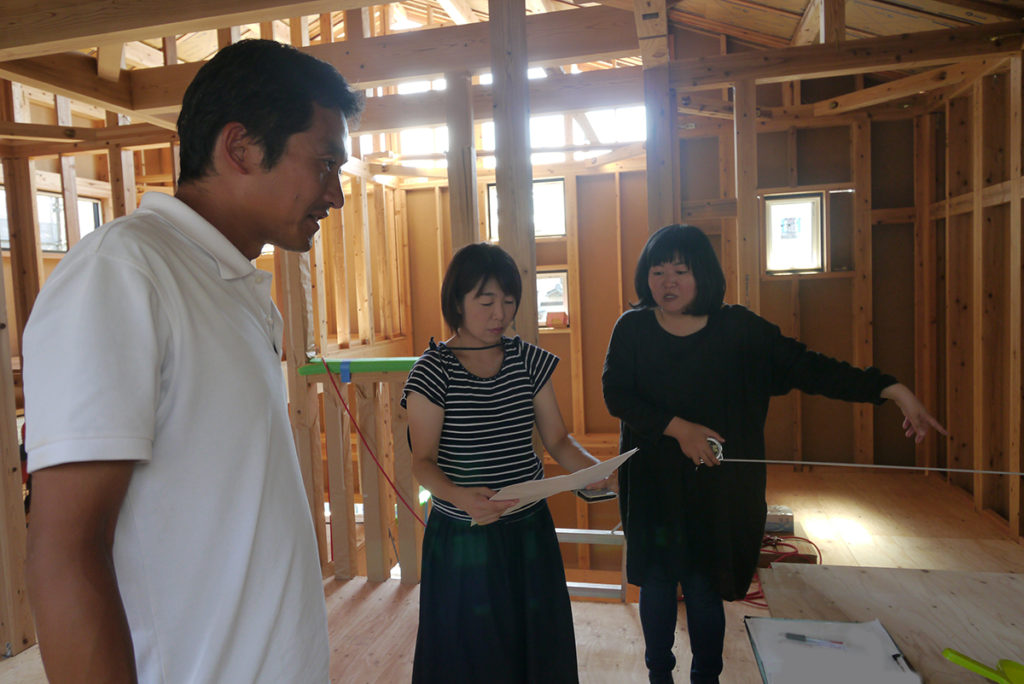 上棟式を執り行うために来ていただいたT様ですが、式の前の時間を使って電気配線の打ち合わせを行いました!