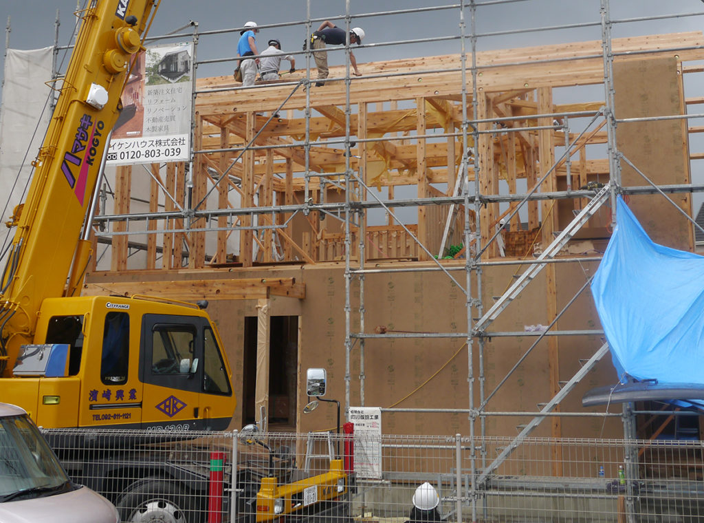 棟上げとは、住宅を建築するときに基礎工事完了後の土台、柱、梁などを施工し、更に棟木を上げることを言います!
