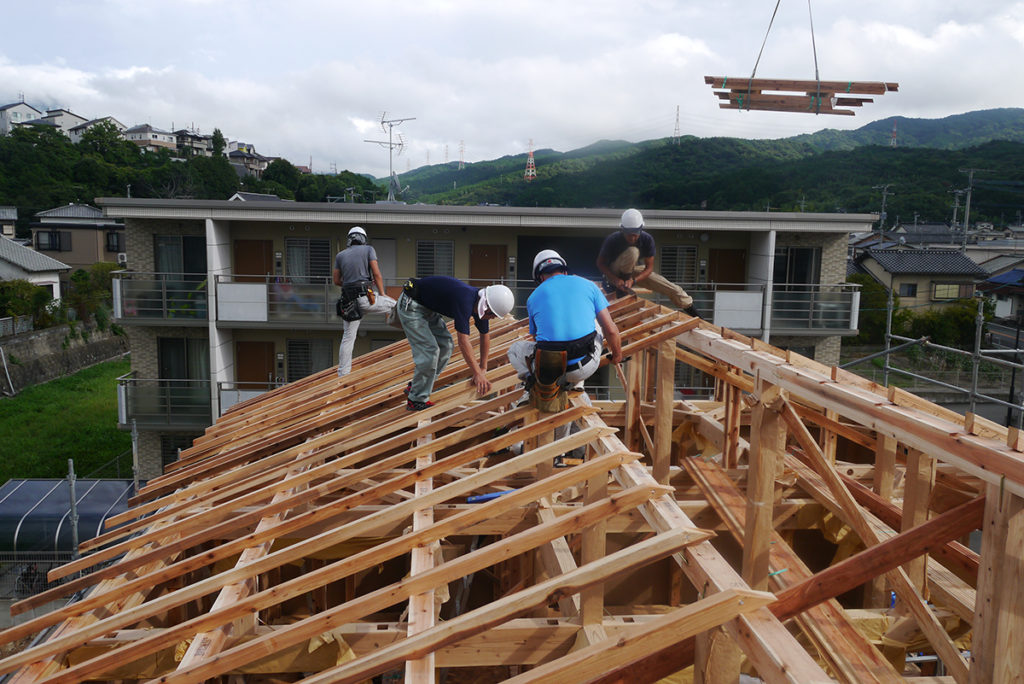 棟木、母屋の上に垂木をかけます!