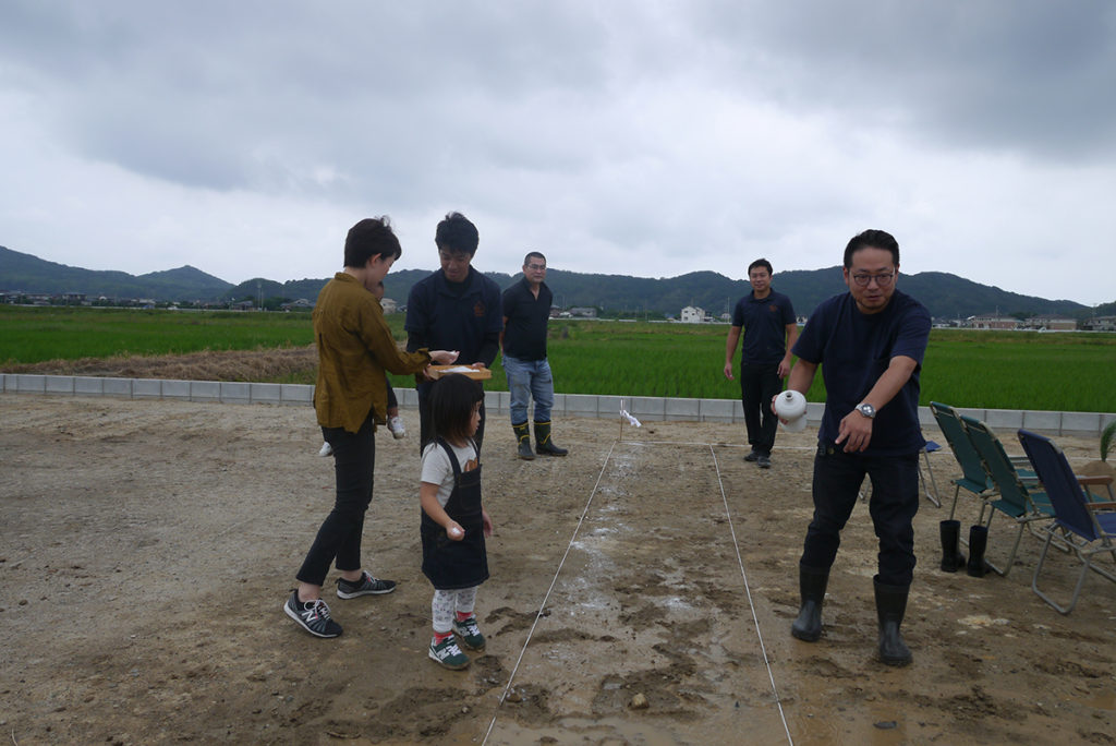 次は地鎮の儀、刈初(かりそめ)、鍬入(くわいれ)、杭打ち(くいうち)の儀です!
