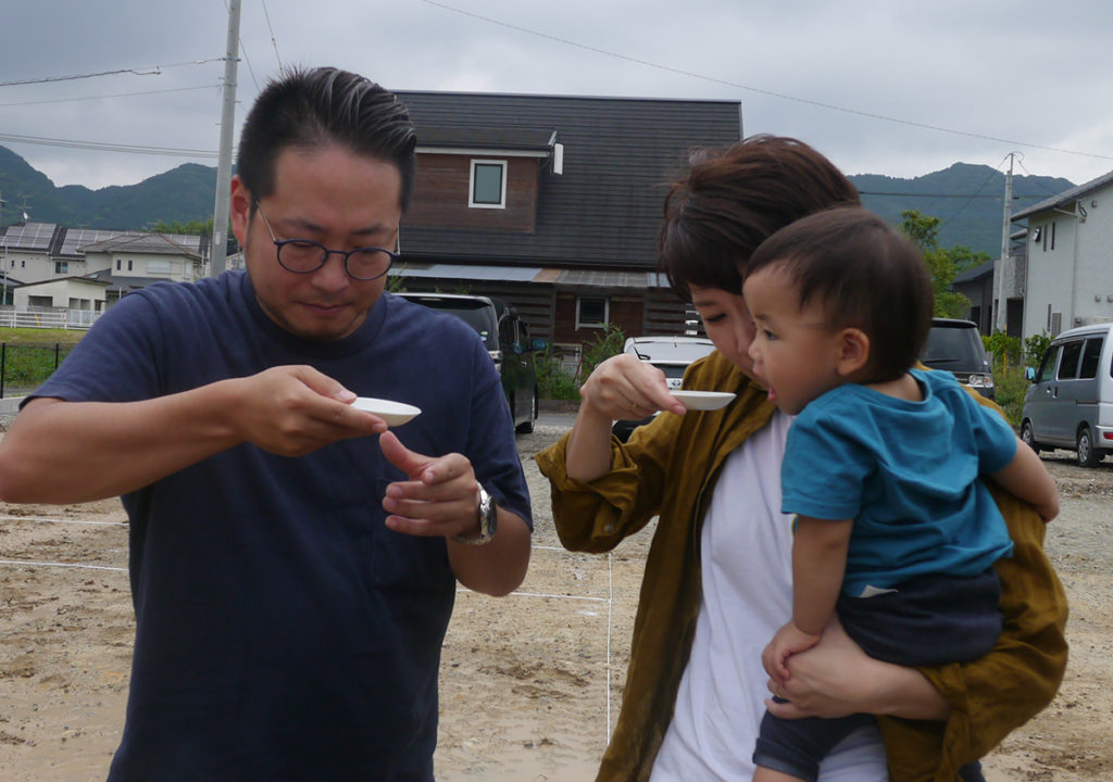 タグ: 地鎮祭 / 新築一戸建て、注文住宅,福岡,福津市, / 棟札,棟木,お神酒, / 神主さん,お祝い,乾杯,