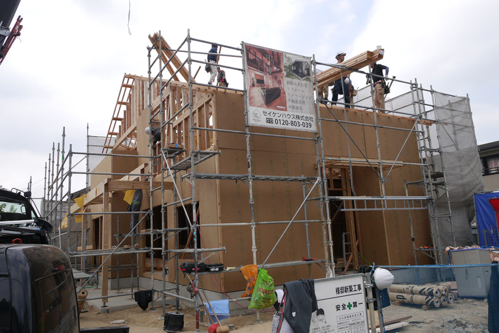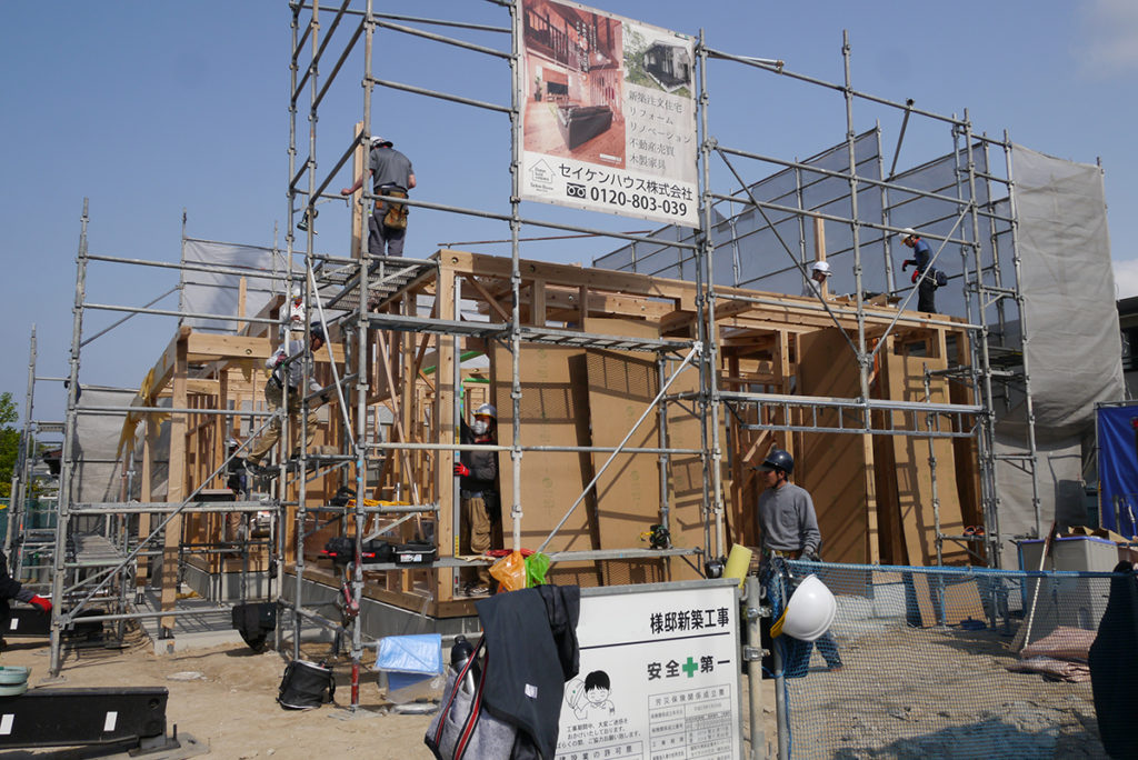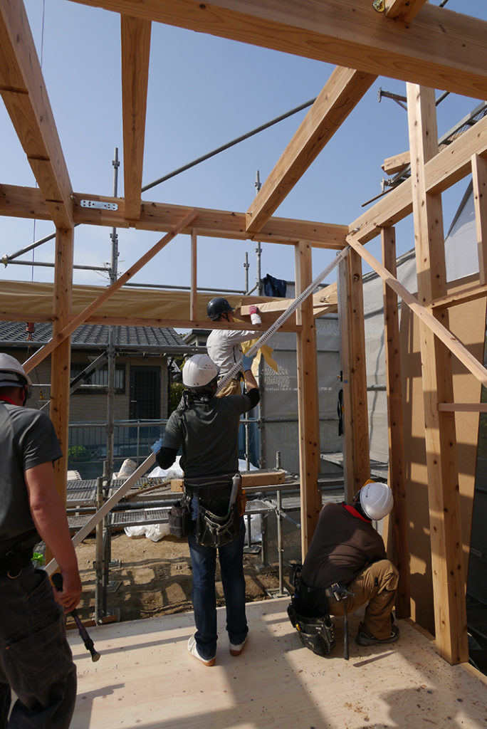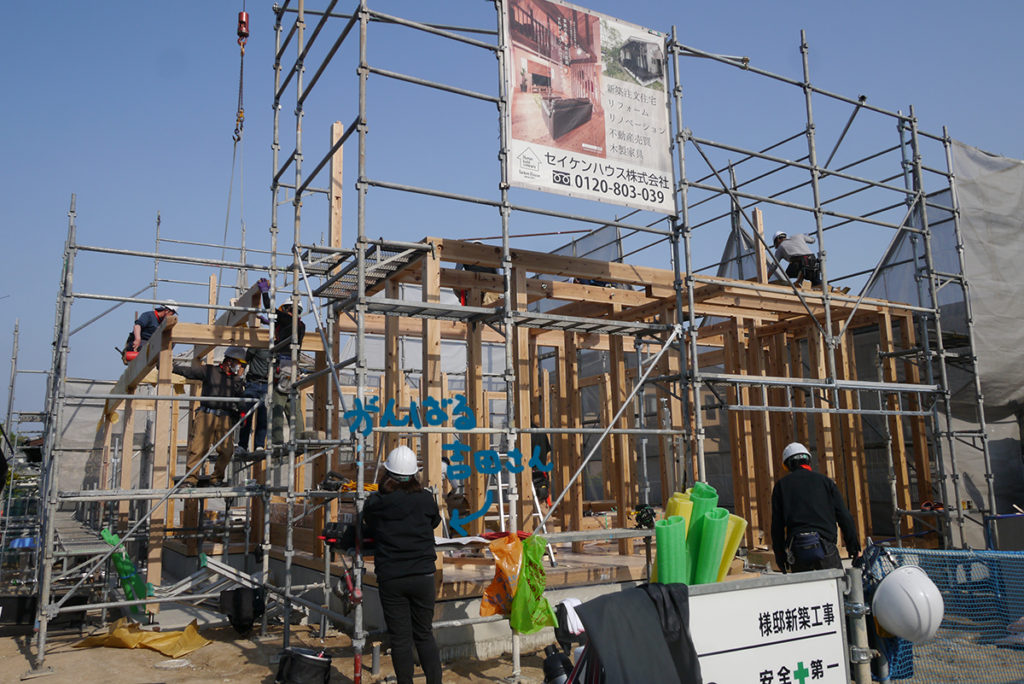 大工さんたちは協力し合って工事を進めていきます!