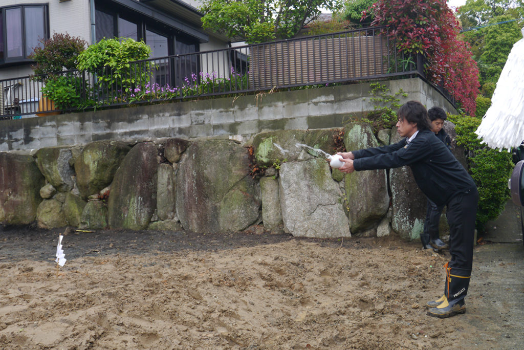 四方祓いでは、敷地の四隅を北東、南東、南西、西北、の順に酒、塩を撒いて祓い清めます!