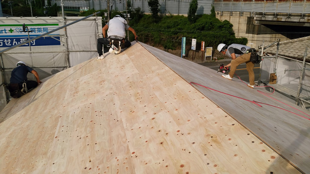 垂木の上に野地合板を貼り・・・