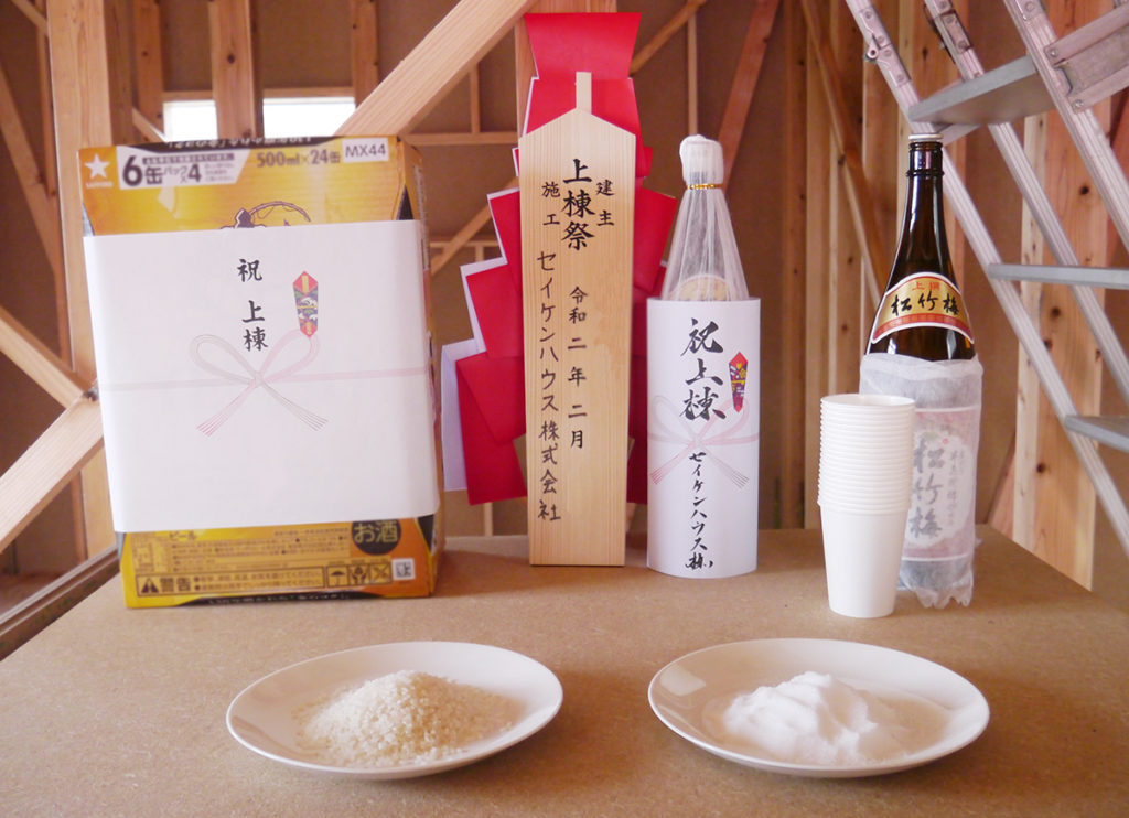 上棟式とは、工事期間中の無事安全、そして建物が完成した後もその建物が無事であるよう願って行われる儀式で、通常は柱などの基本構造が完成した際に行われます♪