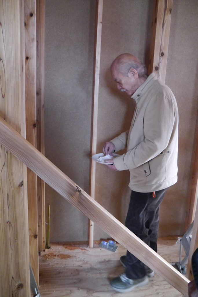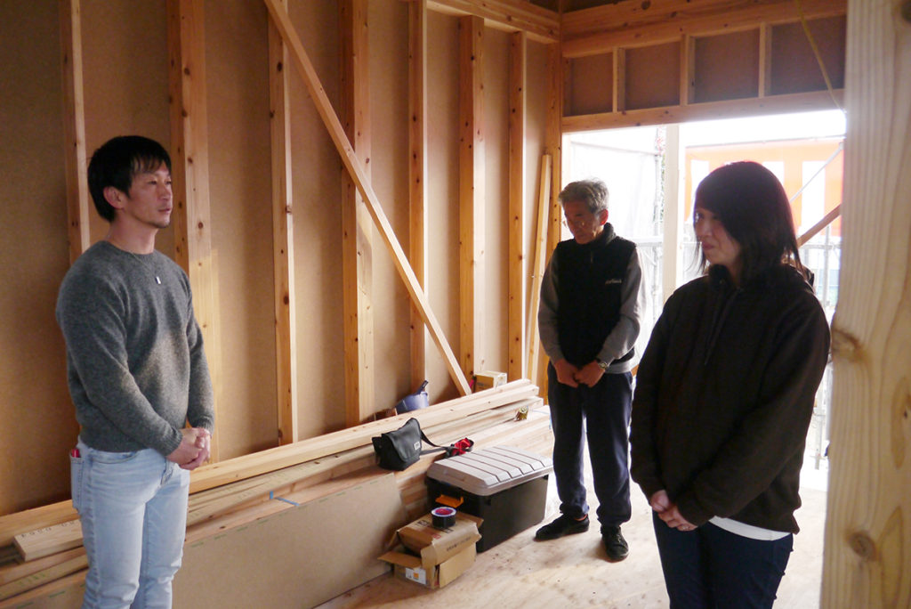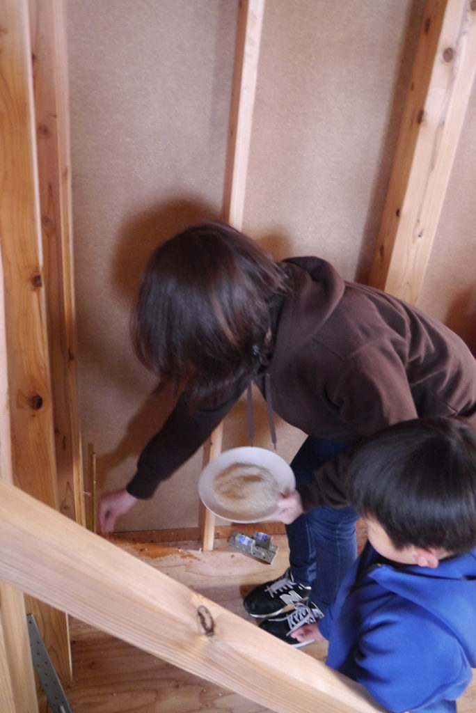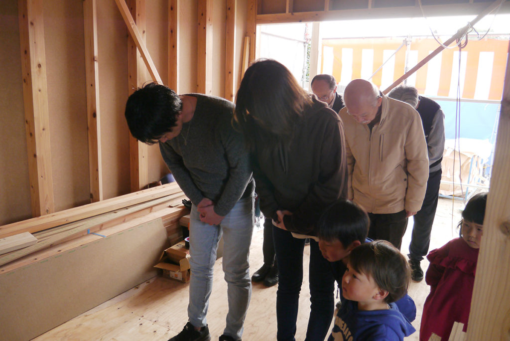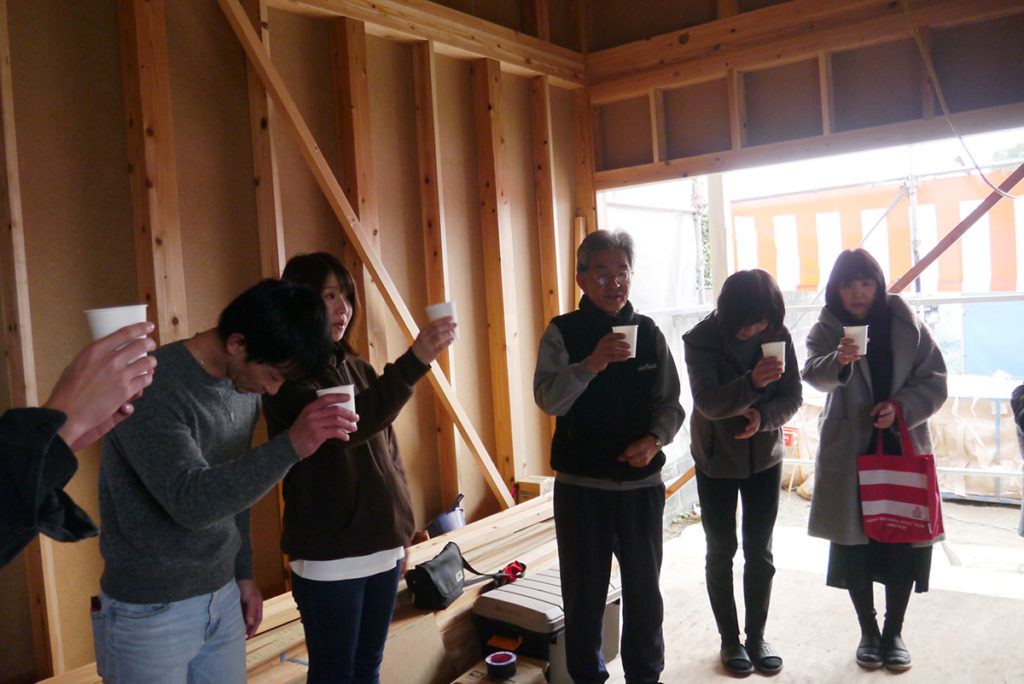 四方祓いでは、施主様が建物の四隅の柱を酒・塩・米で清め、今後の工事の無事を祈ります(*´▽`*)