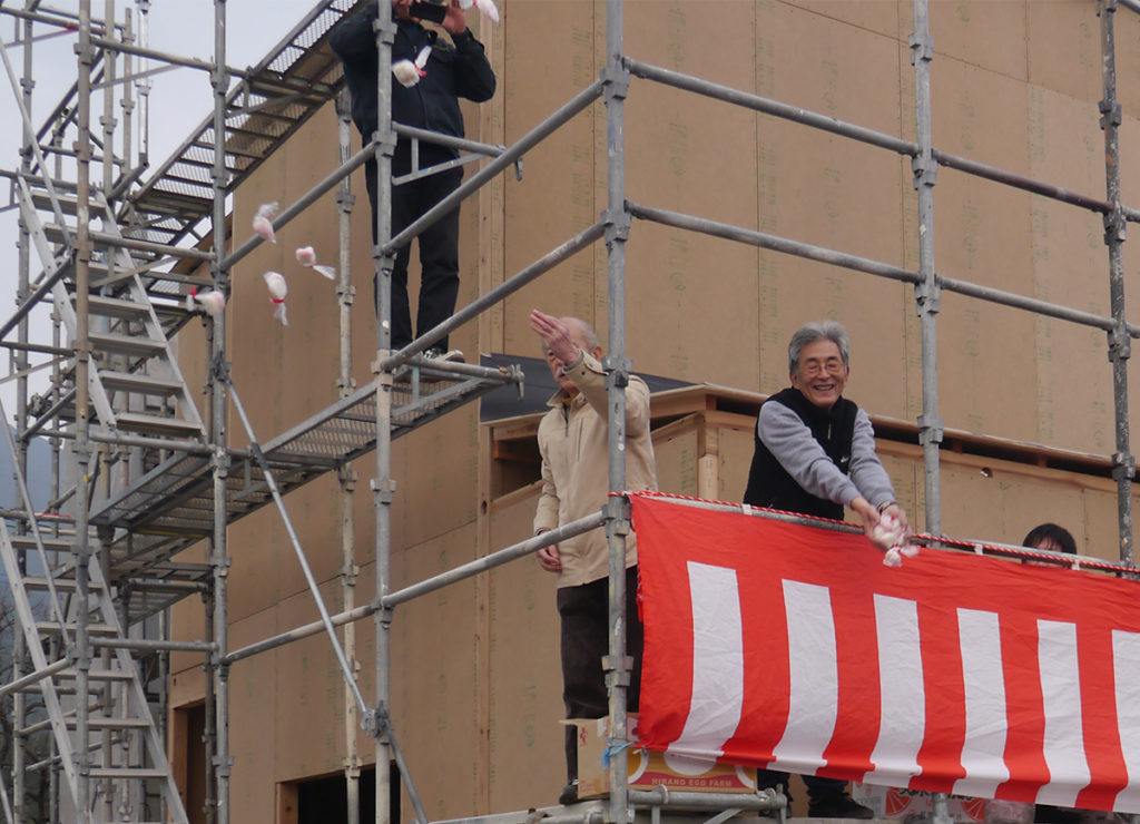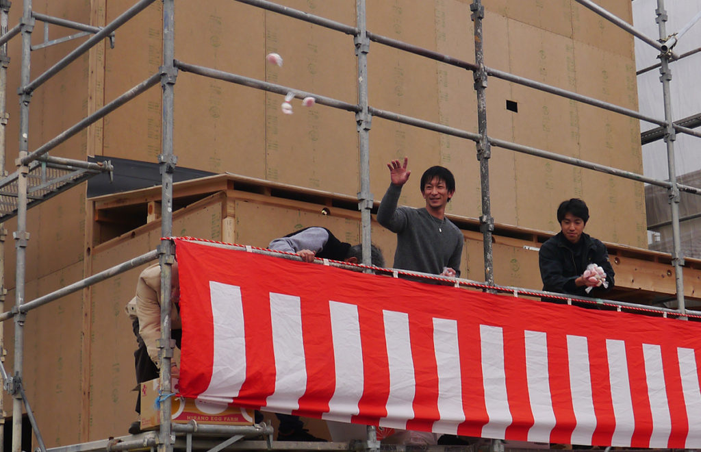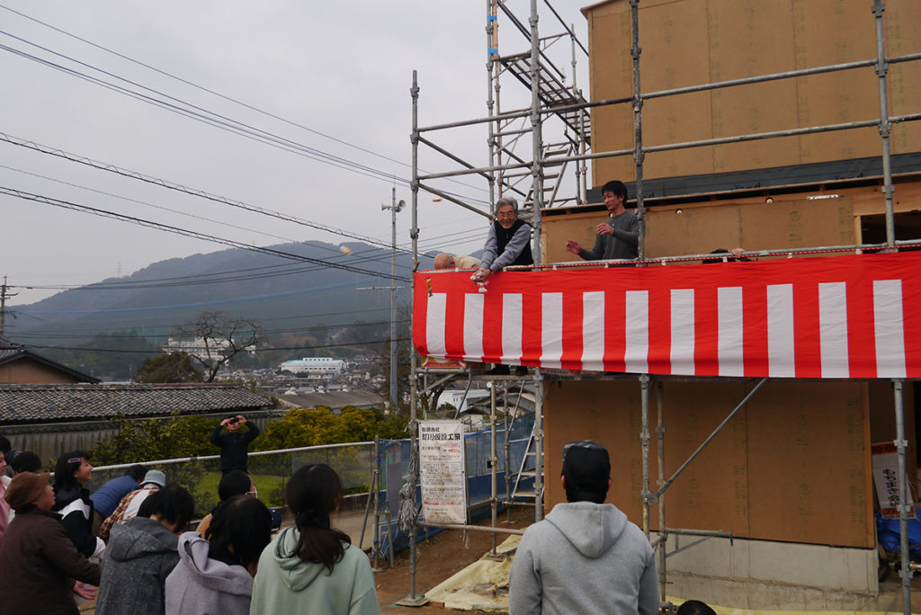 上棟式後は、お楽しみの餅まきです( `ー´)ノ♪