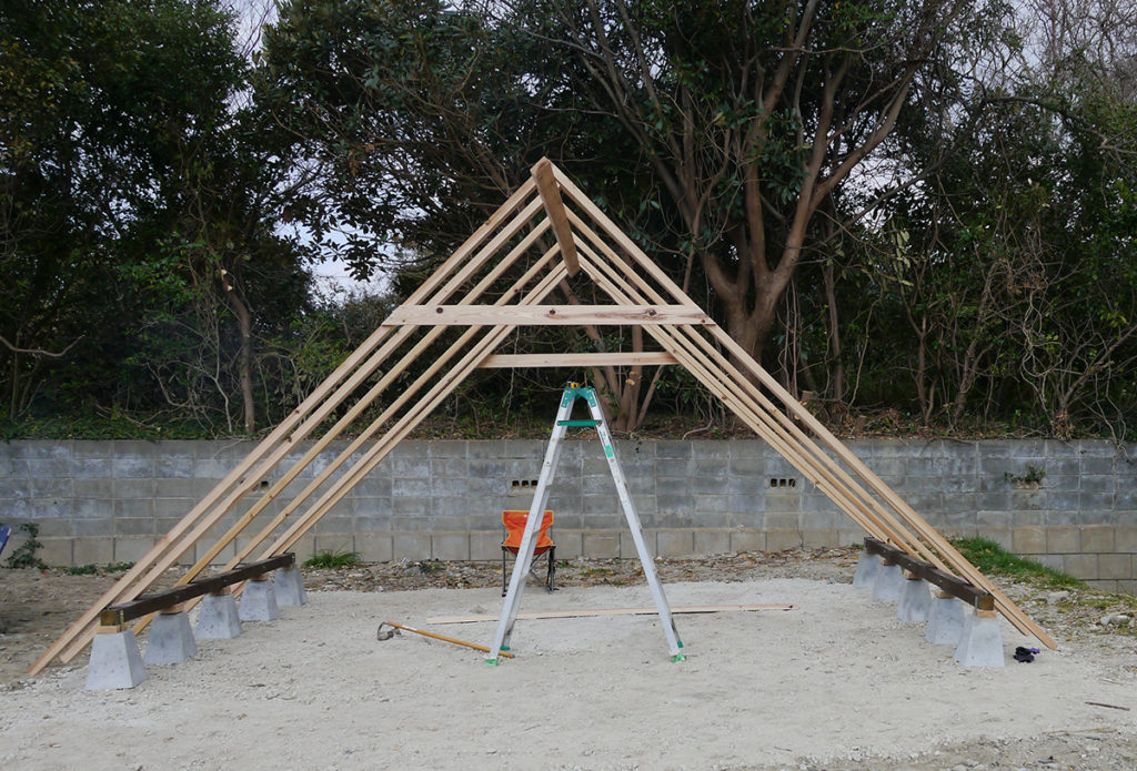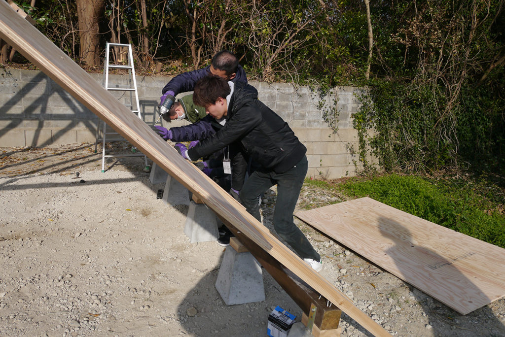 屋根の下地工事まで進んだところで、この日の作業は終了しました( `ー´)ノ♪