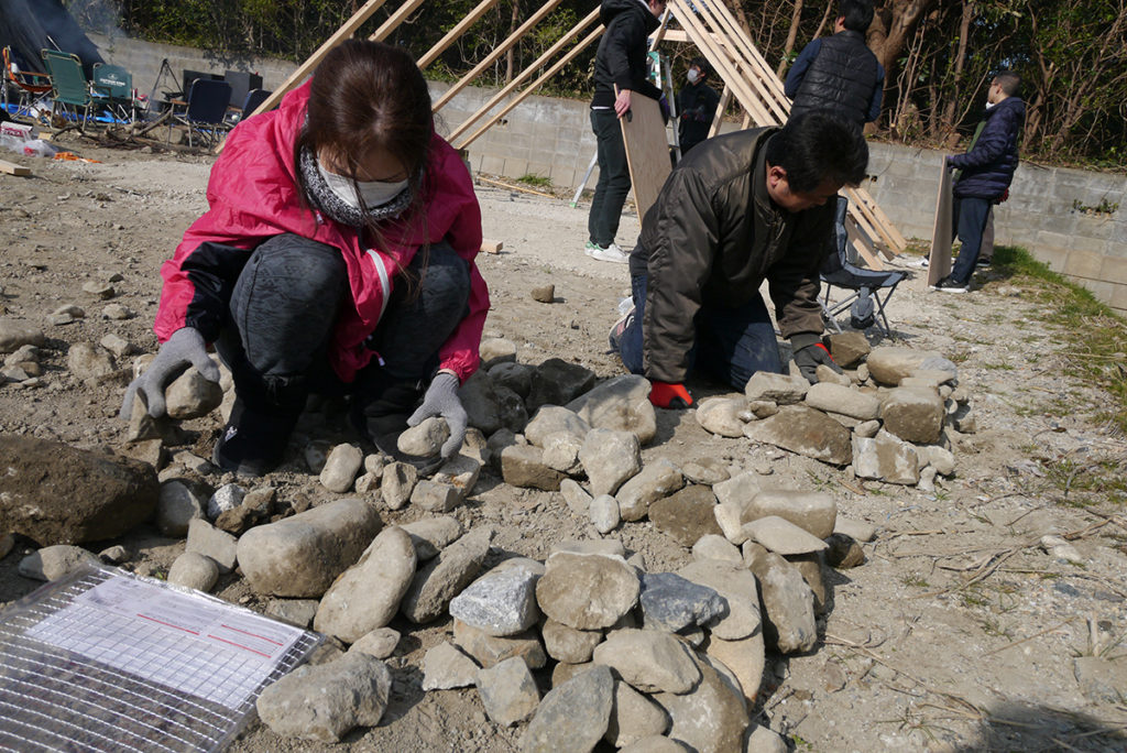 何もないところに石だけを積んで釜戸を造ります!