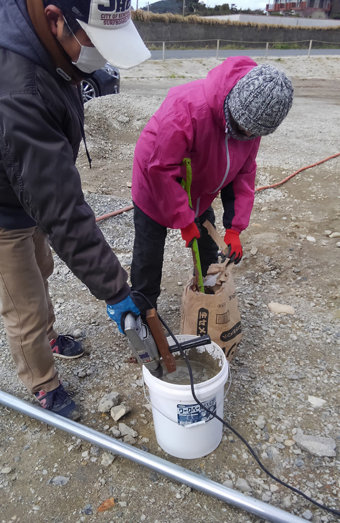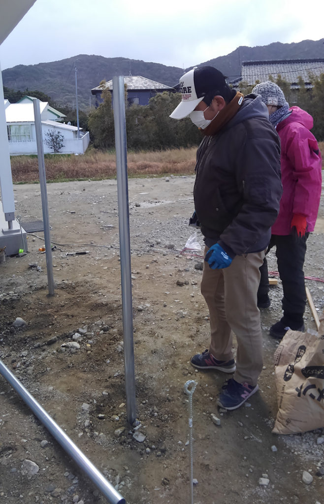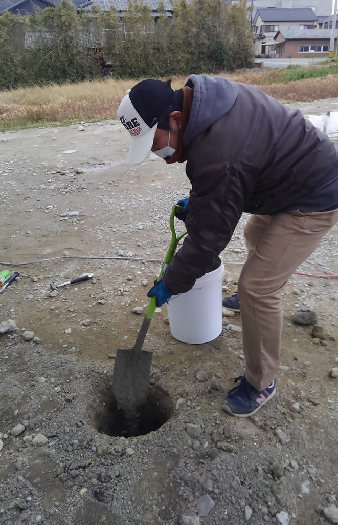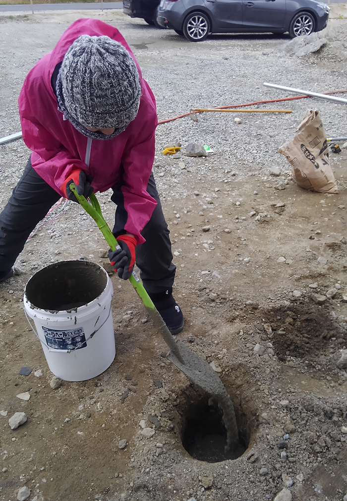 単管を埋設する際、埋め戻すだけではグラつきます!