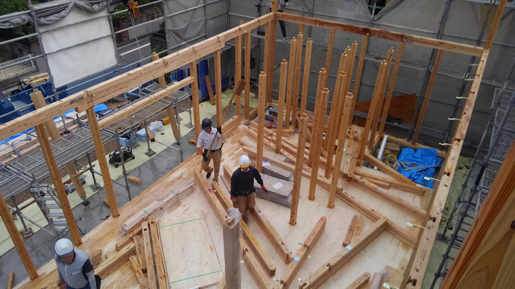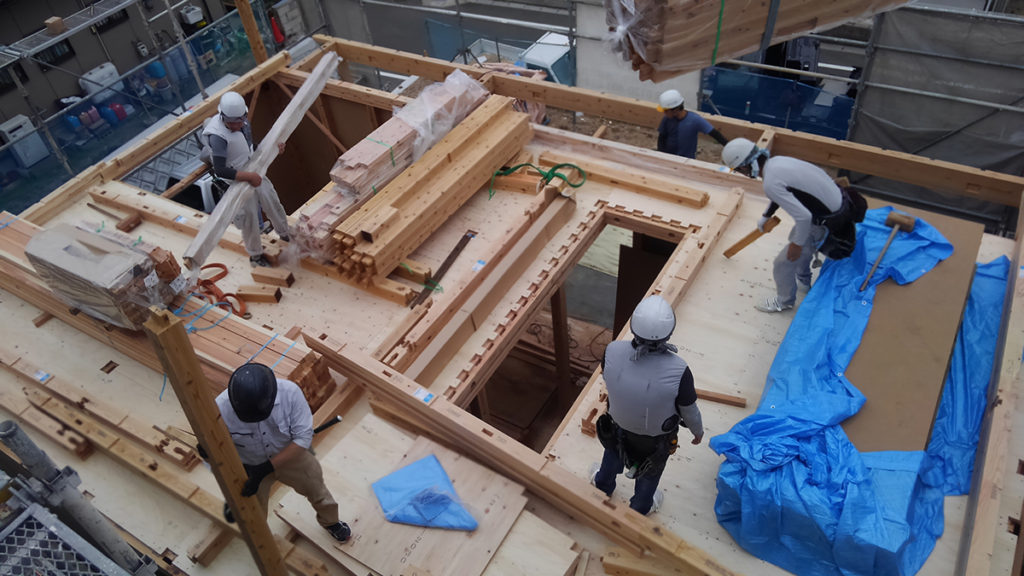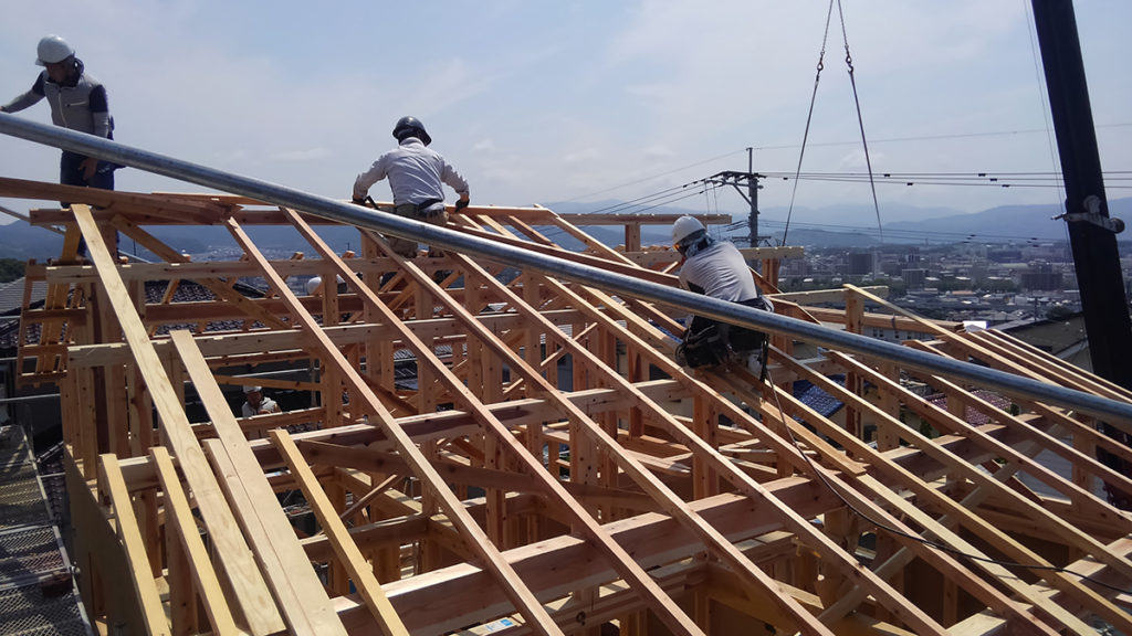 2階の梁などの横架材を組み上げたら、次は屋根小屋組みです!
