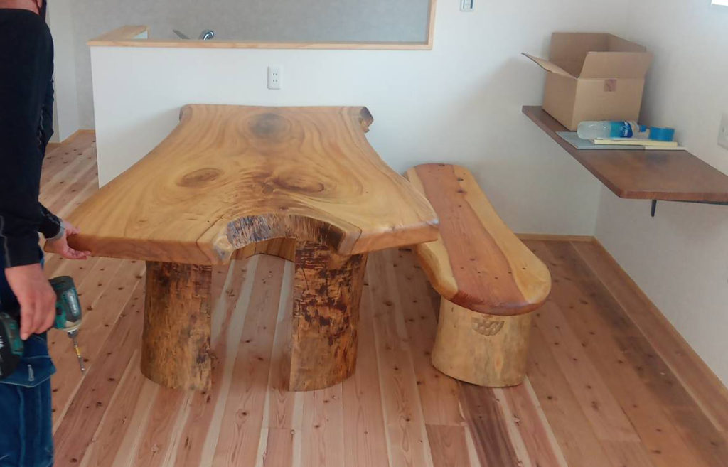 ご自身で材料を選び、打ち合わせをし、ダイニングテーブルとベンチを造ることを決めました!