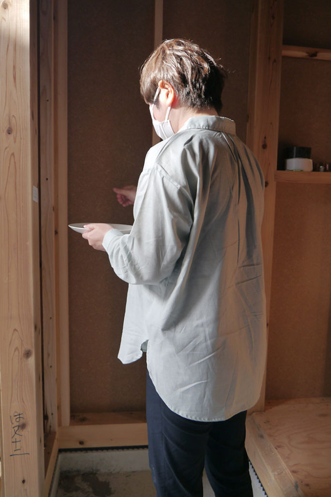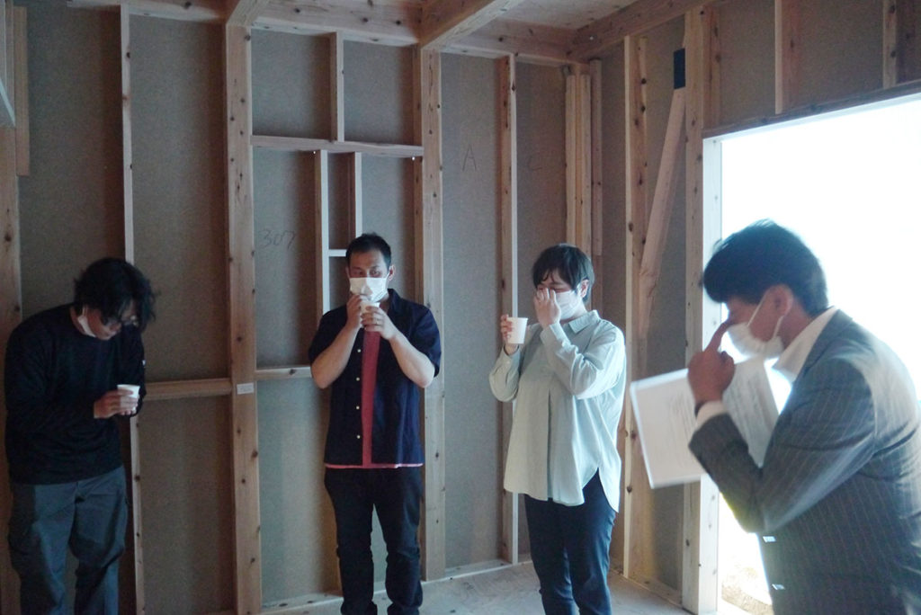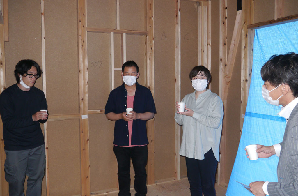 建物の四隅の柱をお神酒、お米、お塩を撒いて祓い清めます!
