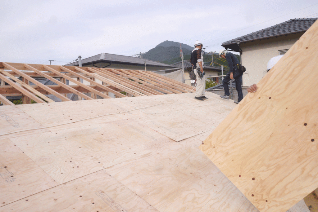 小屋組みが終わると、下地を張る工程です!