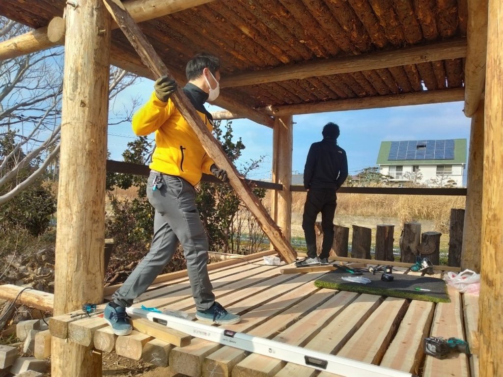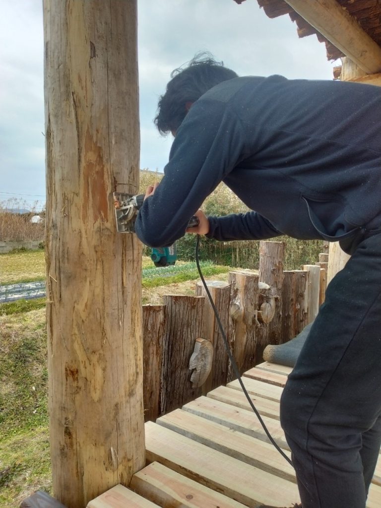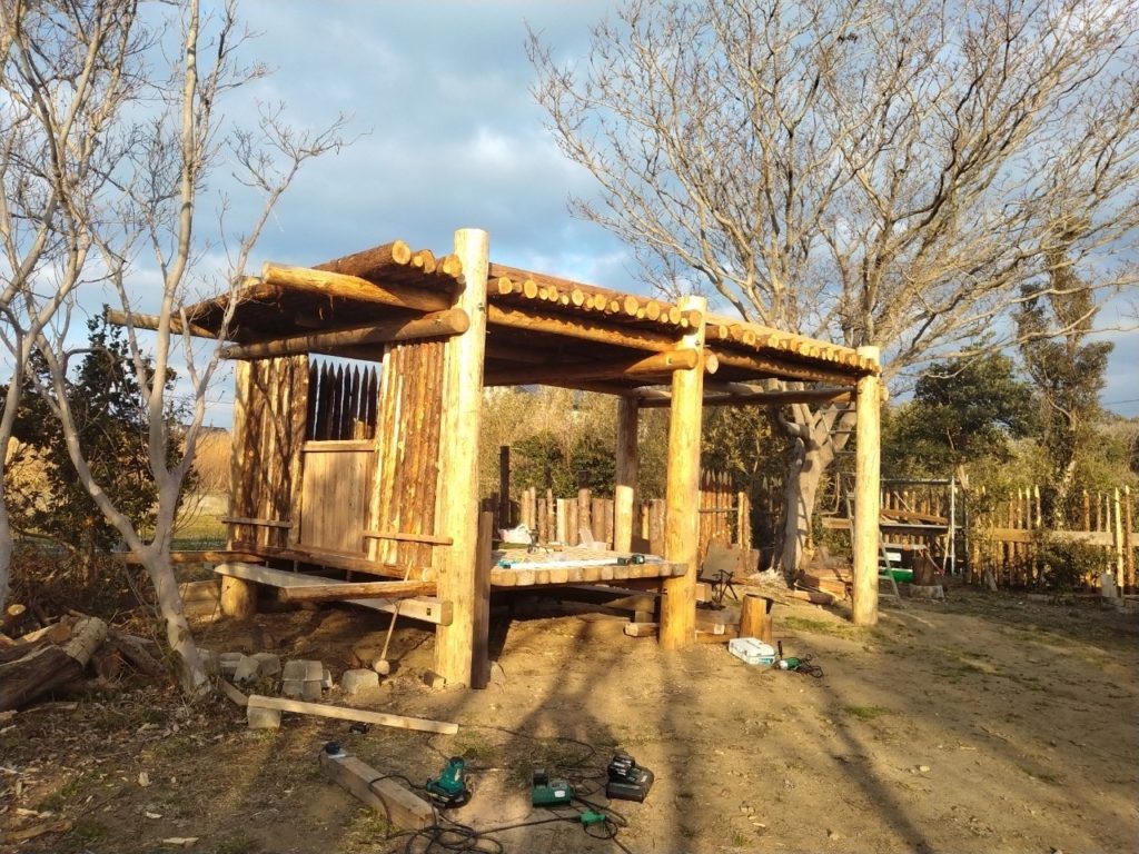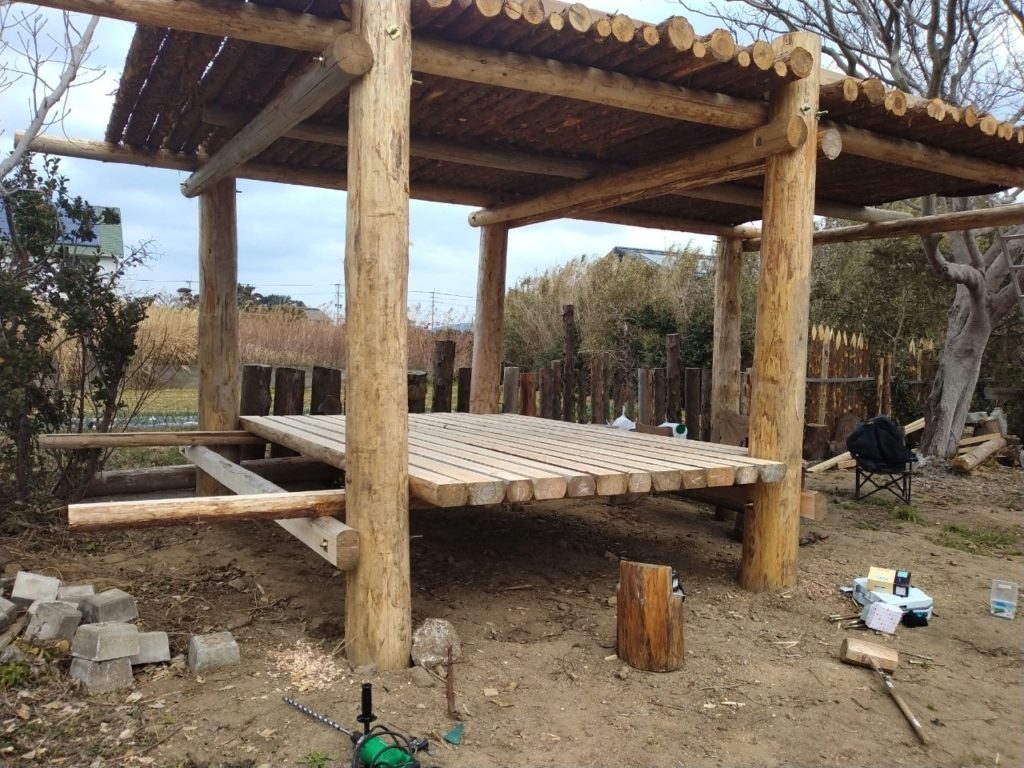 前回は、草屋根を造っておりましたが、今回は内部造作です!