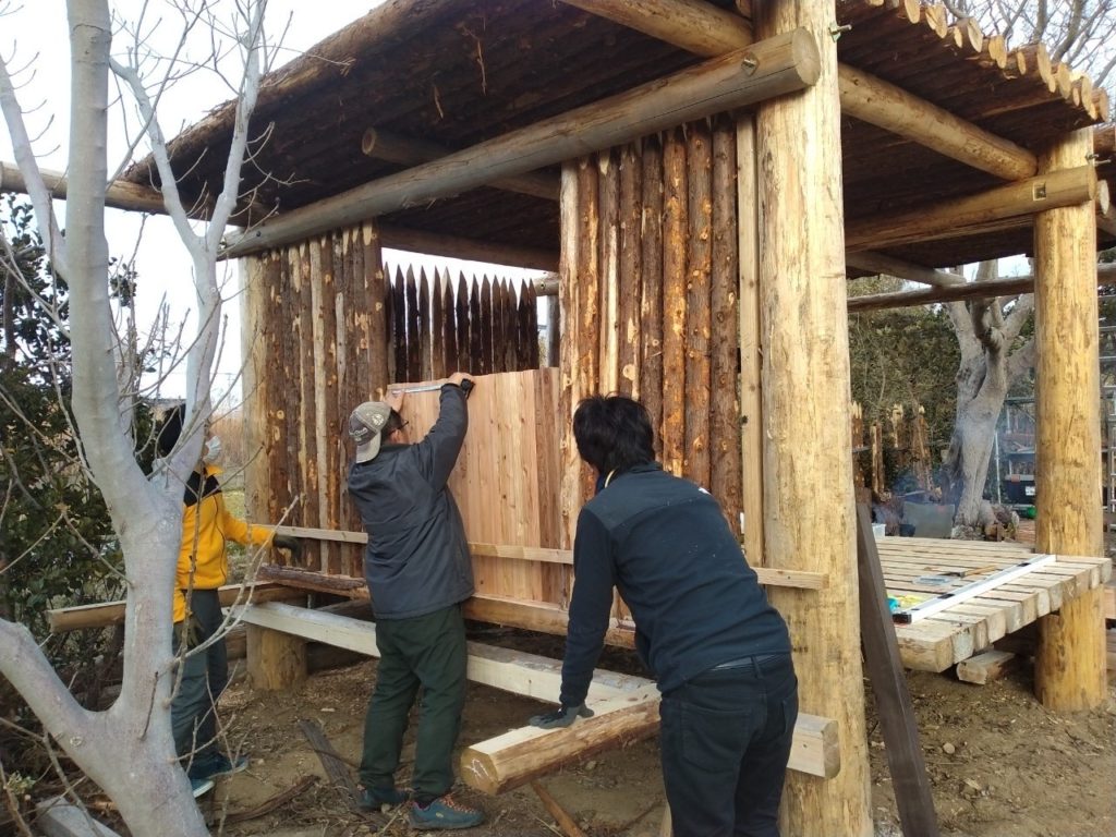上下は安定した造りになっていましたので、次は棒杭を使って壁を造ります!