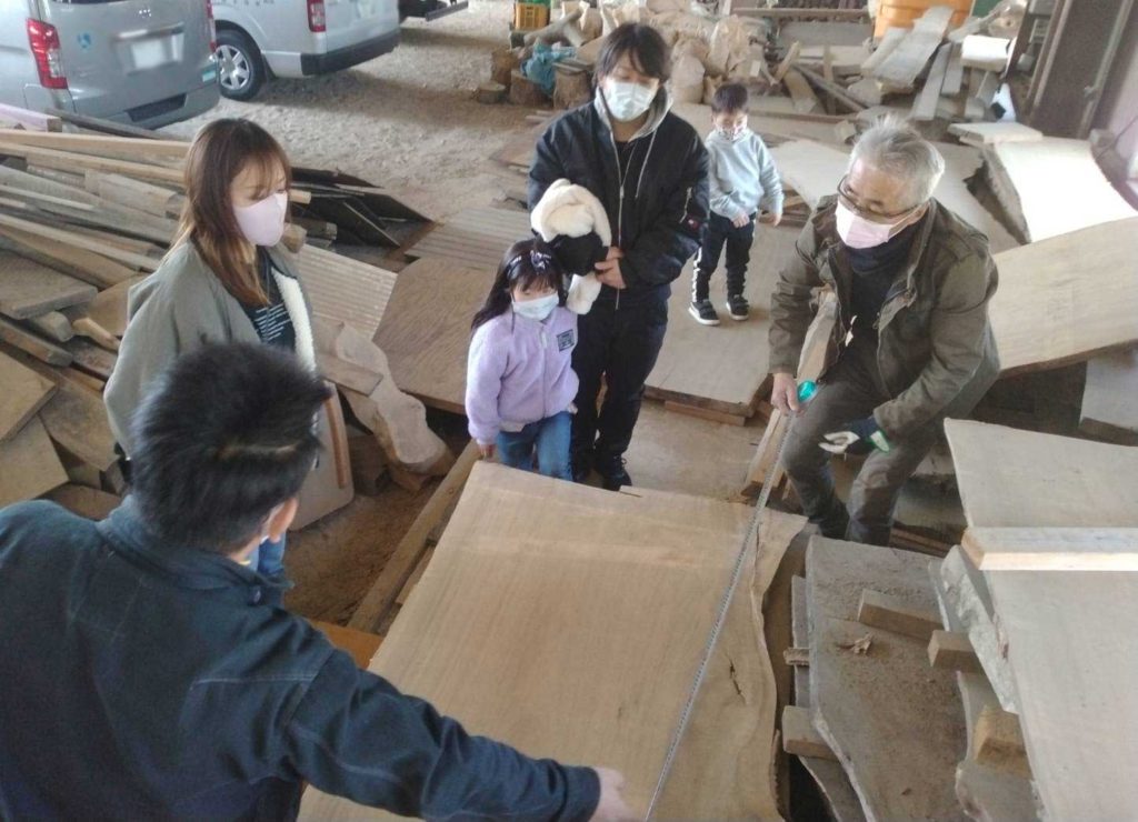 新しいお家にピッタリの食卓を創作する一枚板を探すためです(*’▽’)