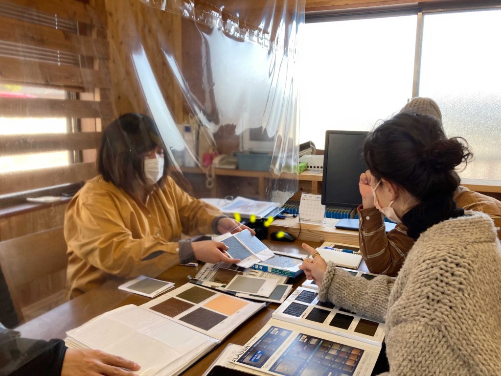 この日のF様は、大よそ検討されているようでしたが、色味で迷われているようでした!