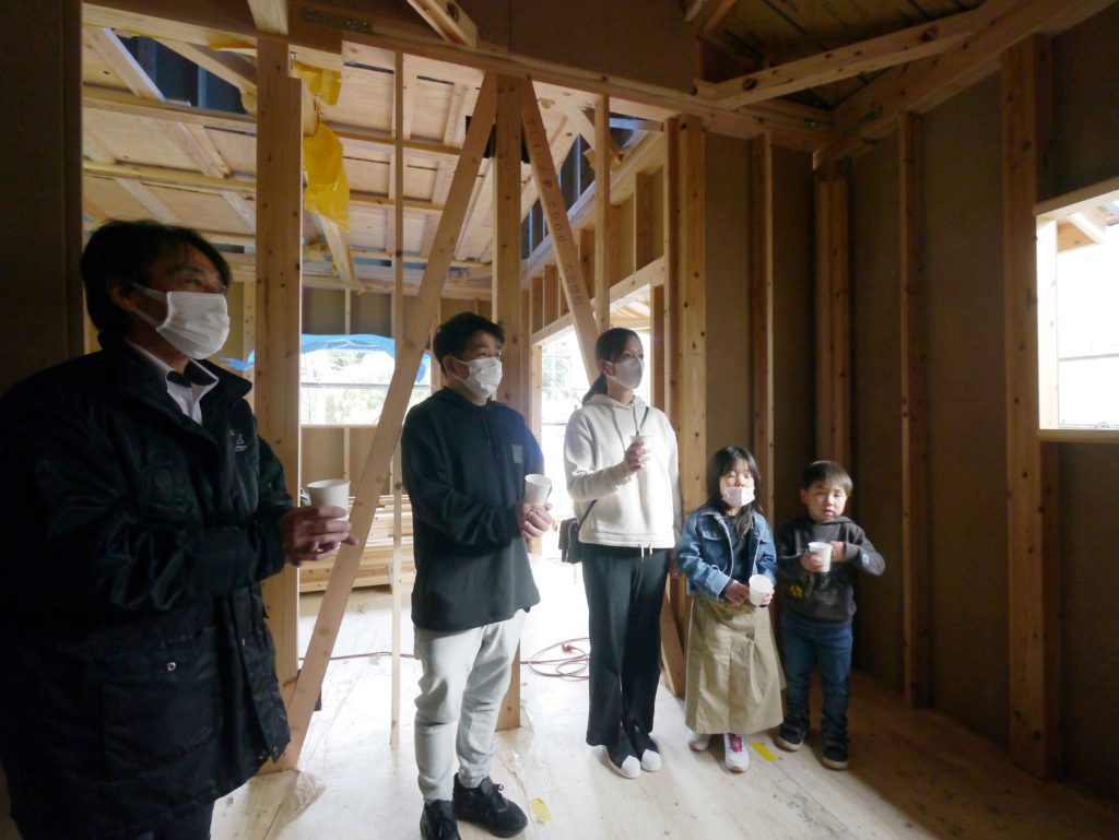 先日、棟上げが終わった岡垣町O様邸にて、上棟式が行われました!