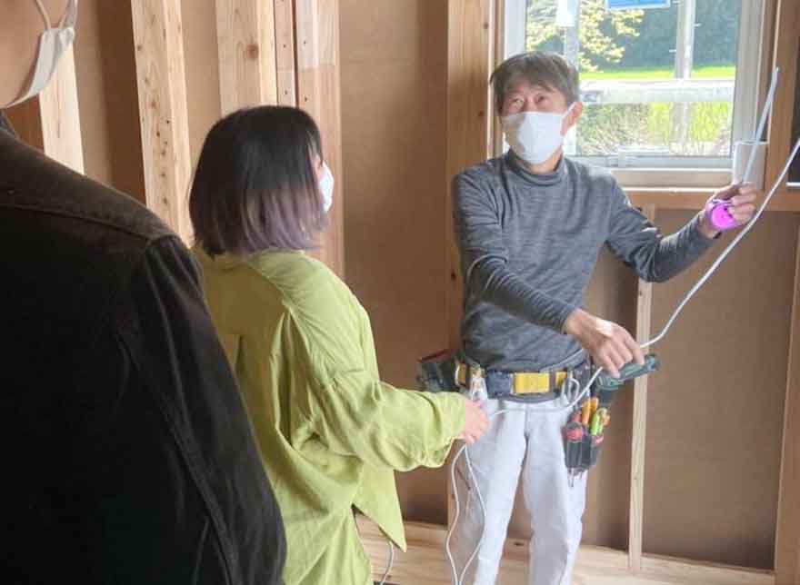 設計の吉田さんが、電気屋さんとお話をしながら間違いがないように進めました(*’▽’)