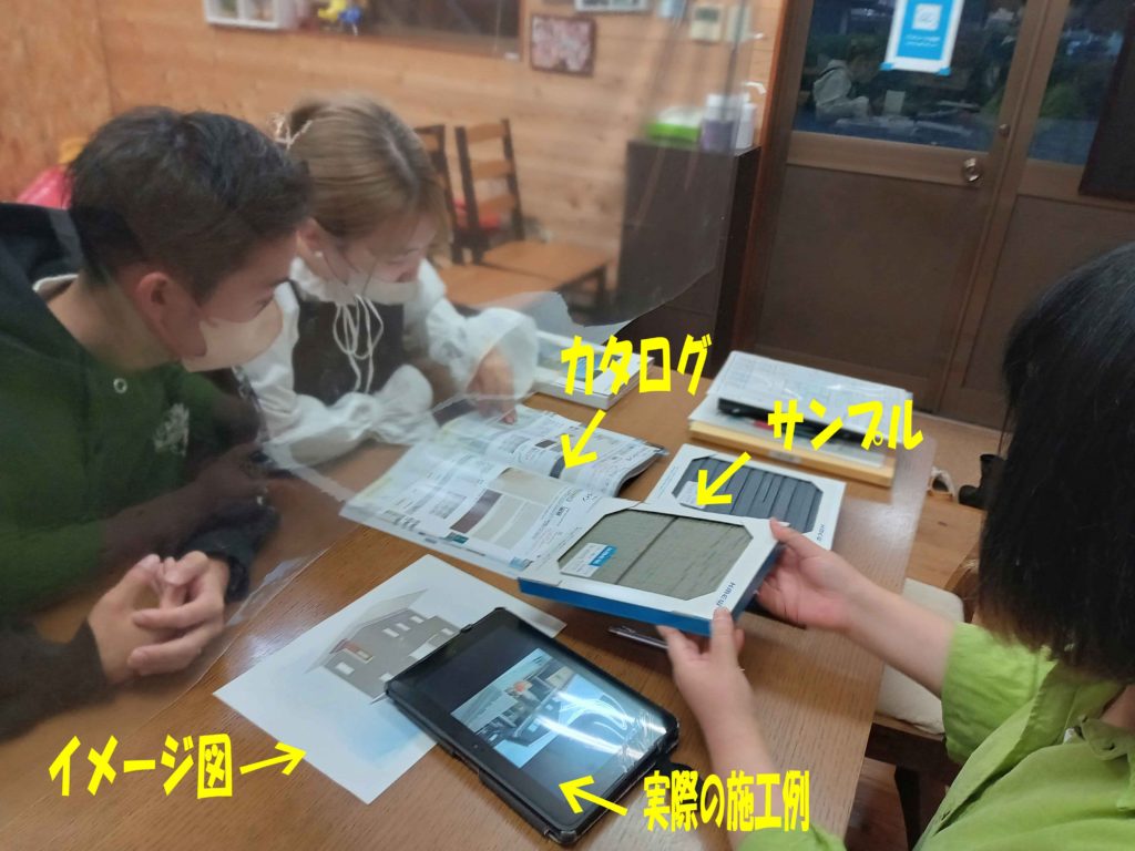 そして、実際の施工例や、カタログ、サンプルなどを並べてお話をもっと詰めていきます(^^♪