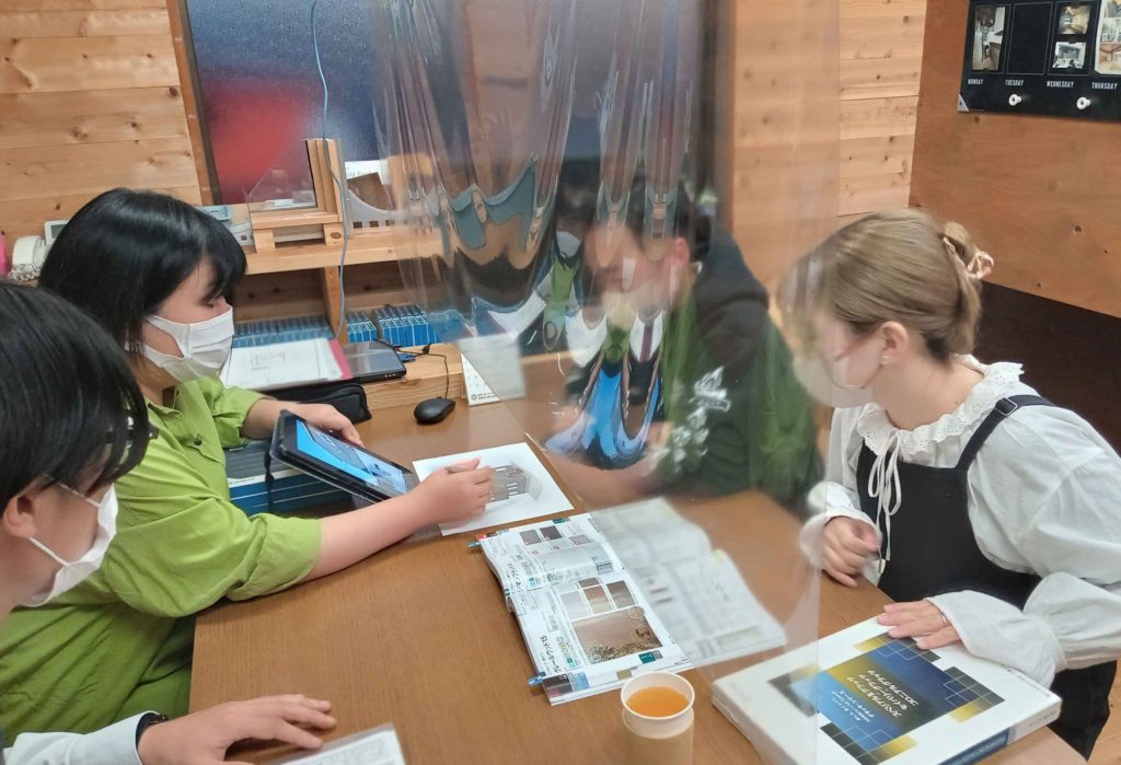 前回までの打ち合わせで聞いた、お好みのイメージや、建物の形、大まかな色味を参考に、設計の吉田さんが作ったイメージ図を使ってお話を進めます!