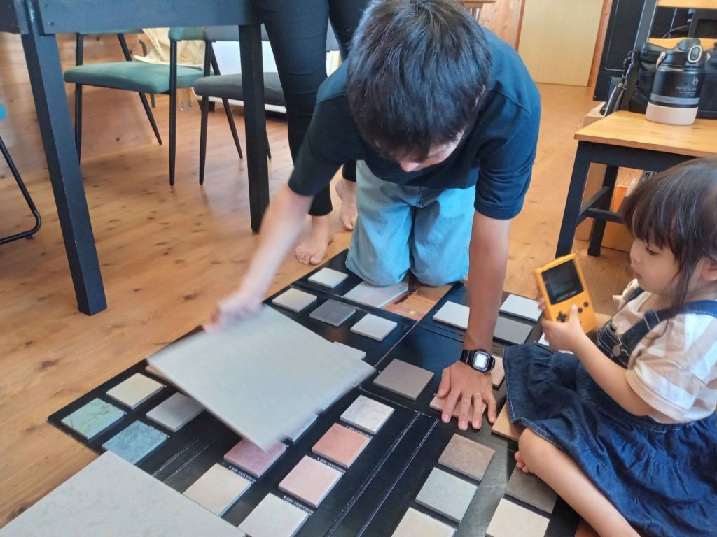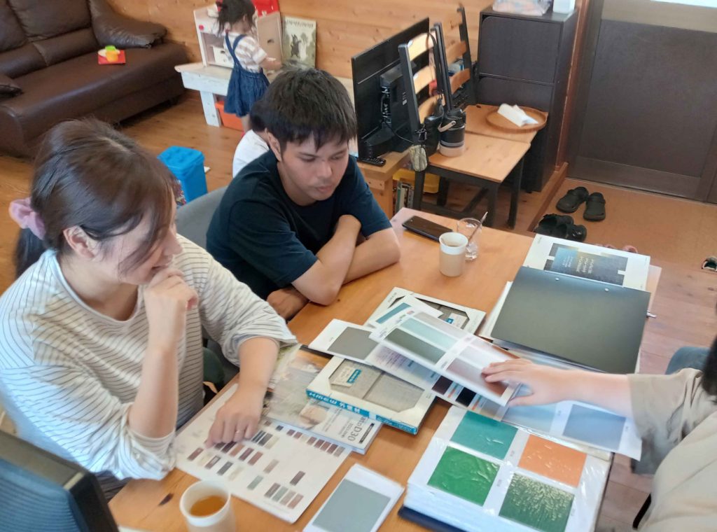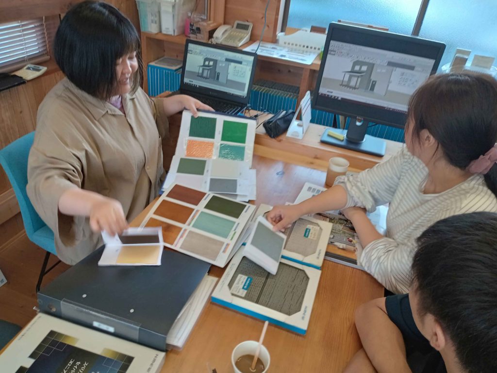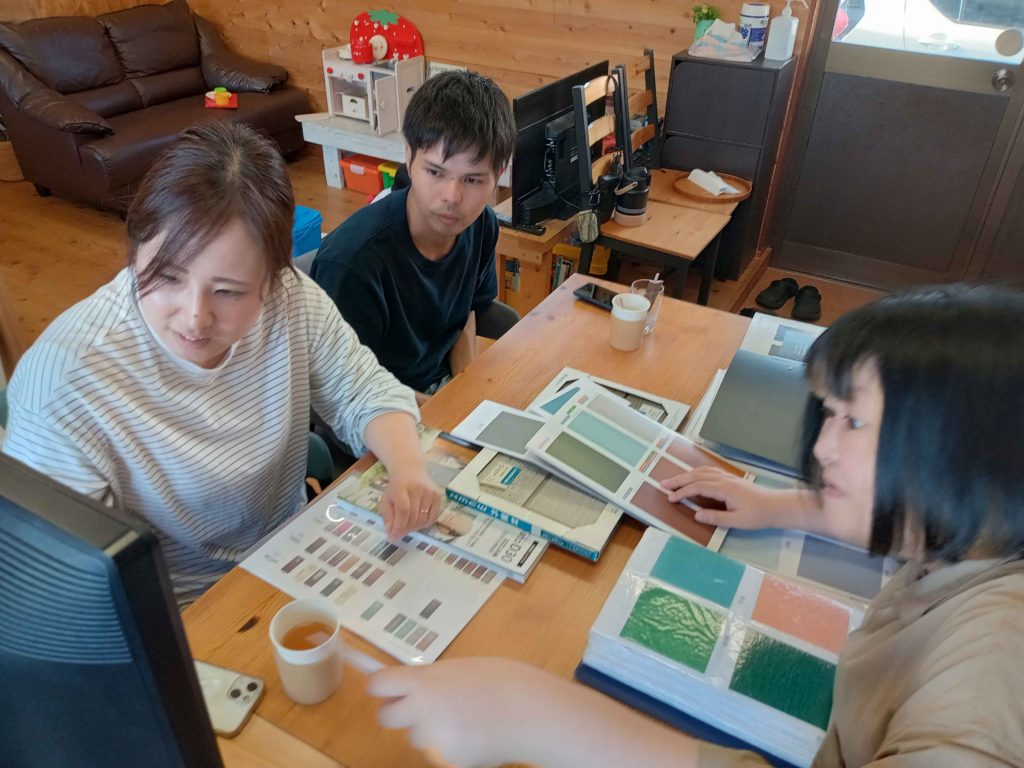 ベースのカラーを基に、外壁や基礎、玄関タイルまでいろいろな色を決めていきます(#^^#)