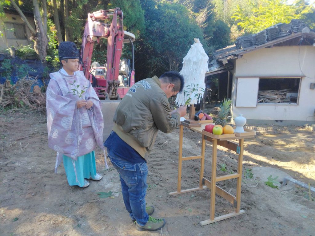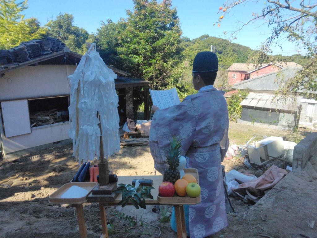 先日、西区今宿の解体現場にて、スタッフ立会いの下、『水神上げ』を執り行いました!