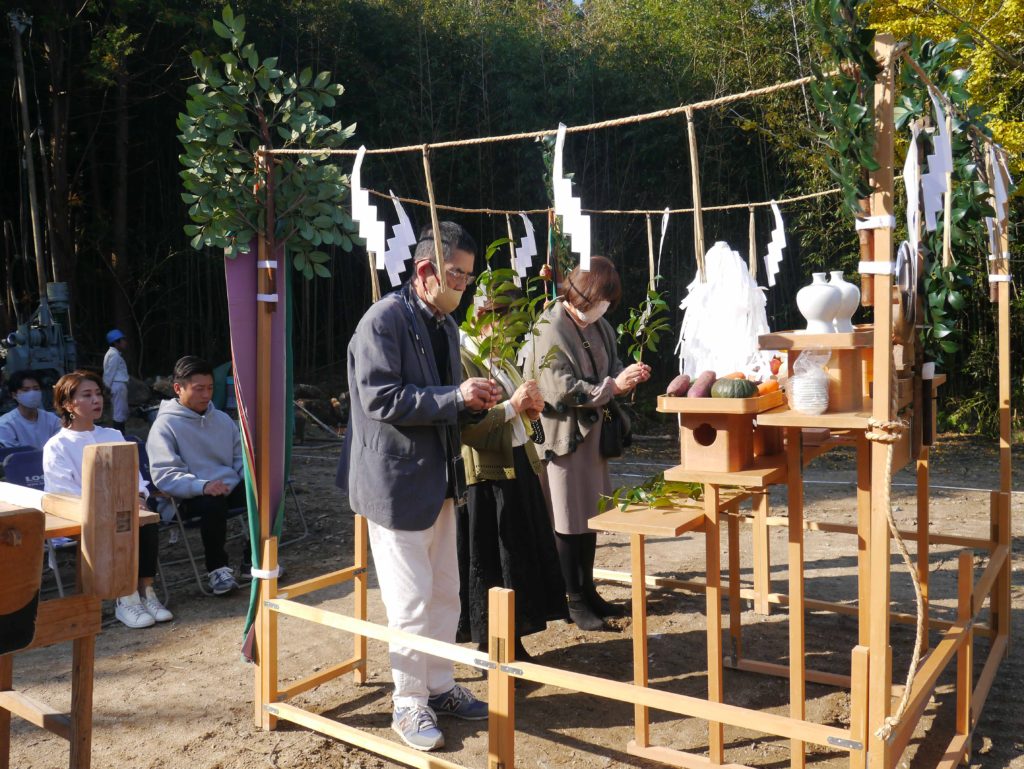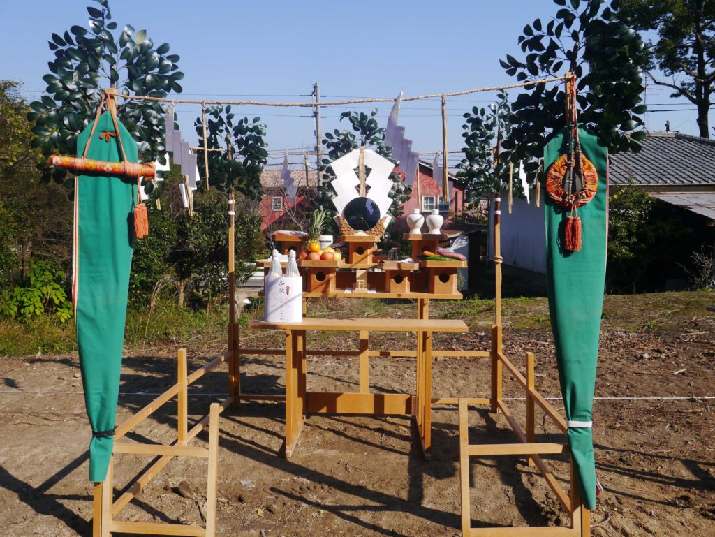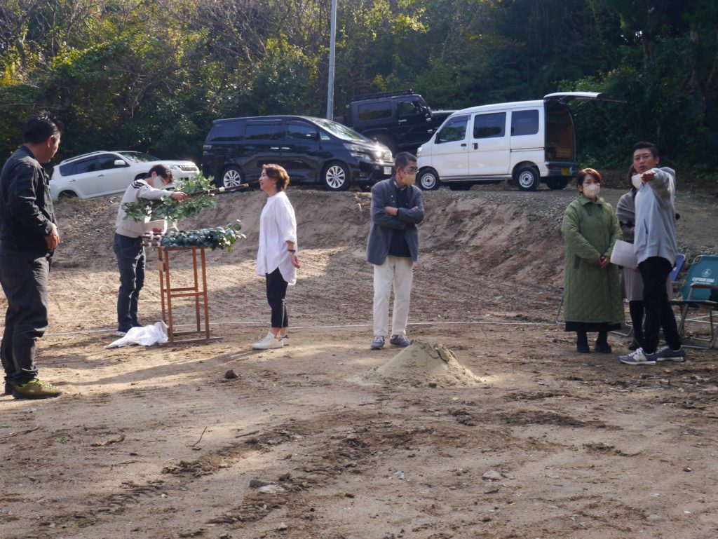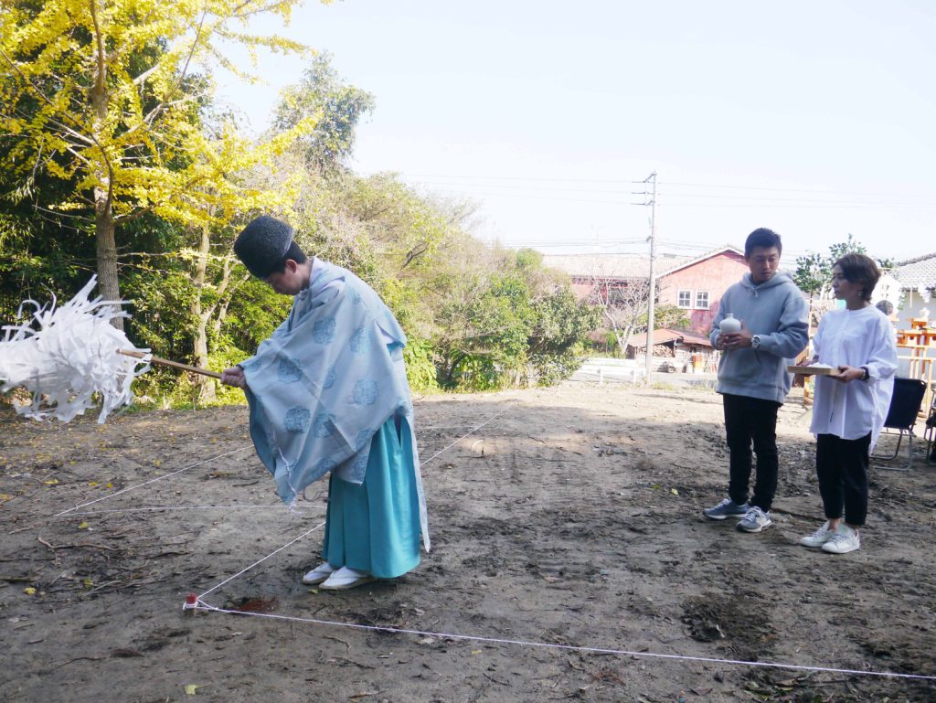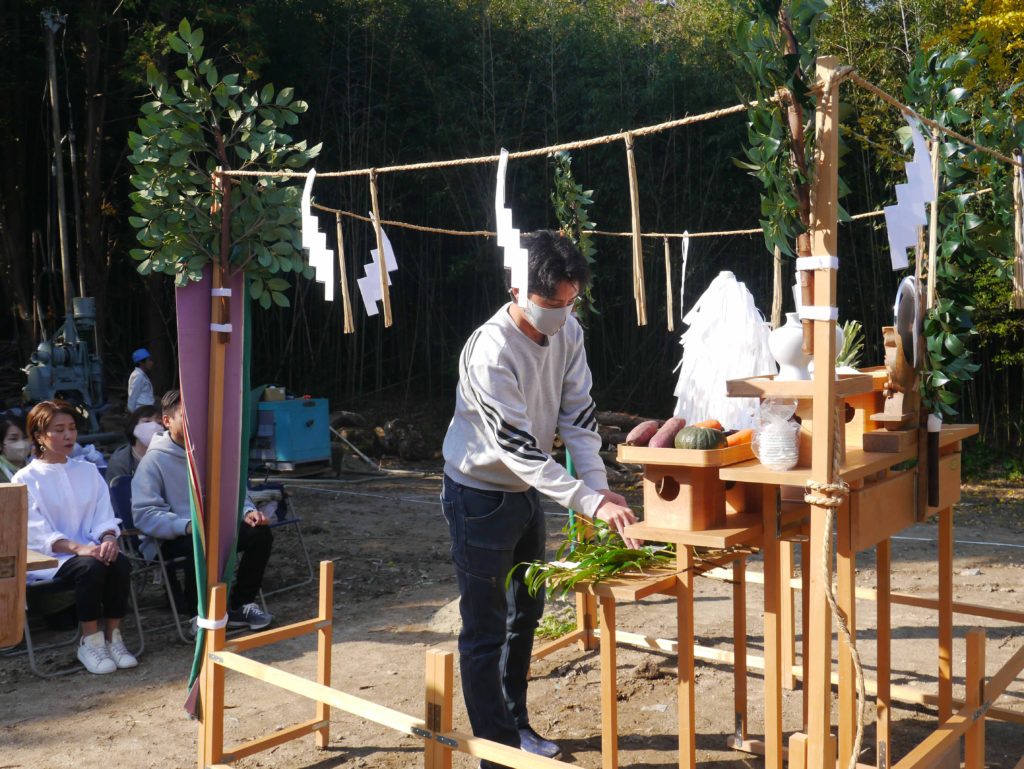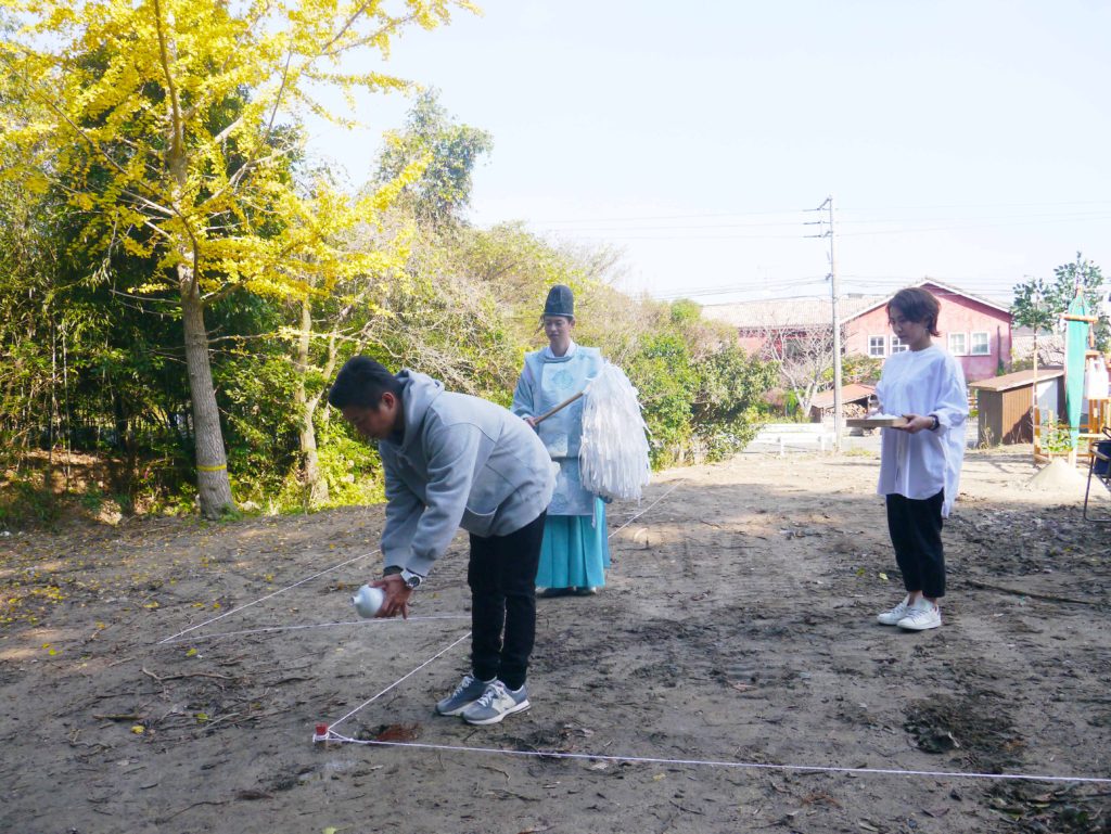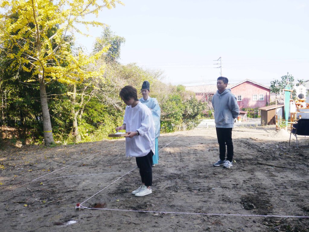 地鎮の儀には、施主様、そして施工会社が初めてその土地に手をつけるという意味があり、敷地の安定と、工事の無事安全を祈願します!