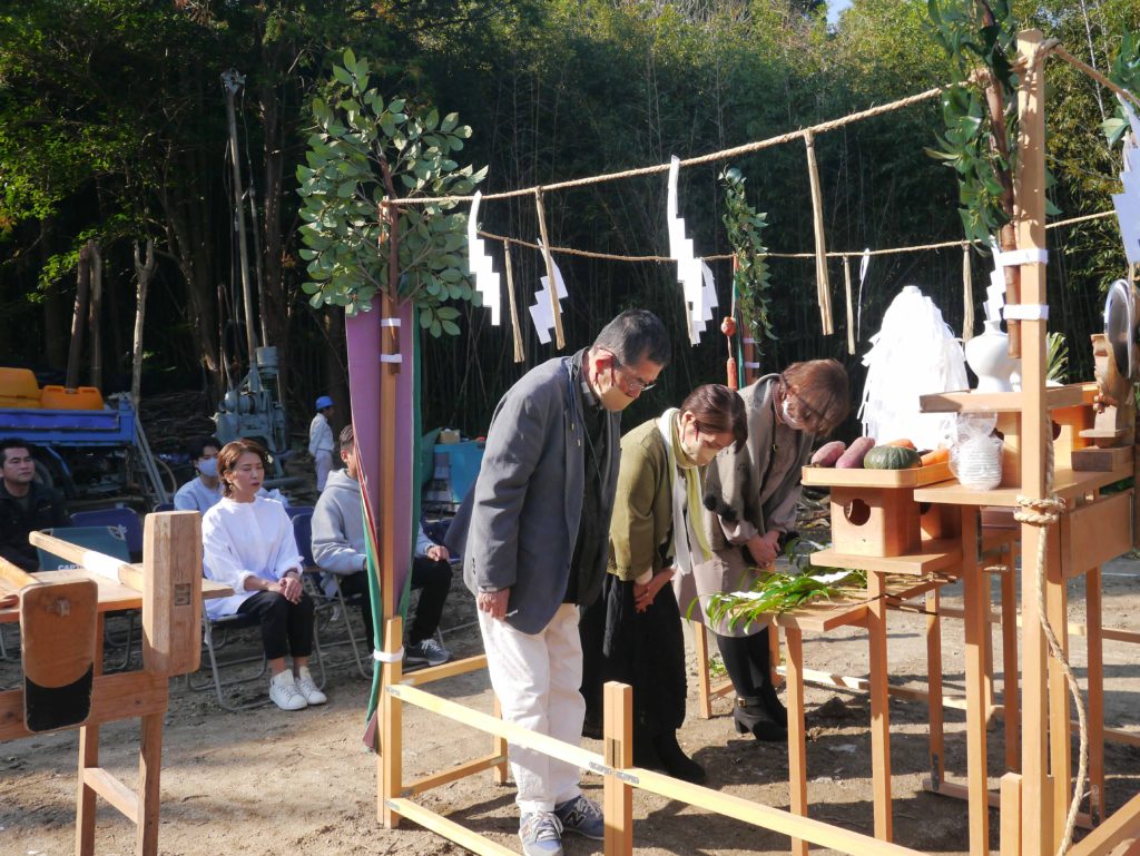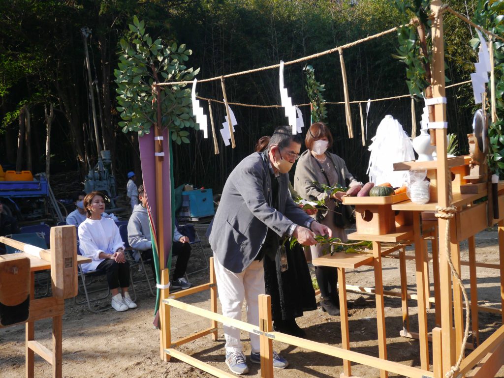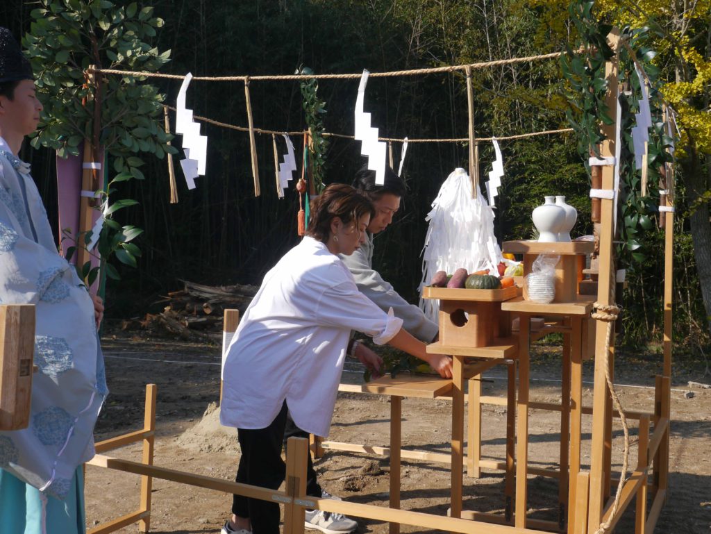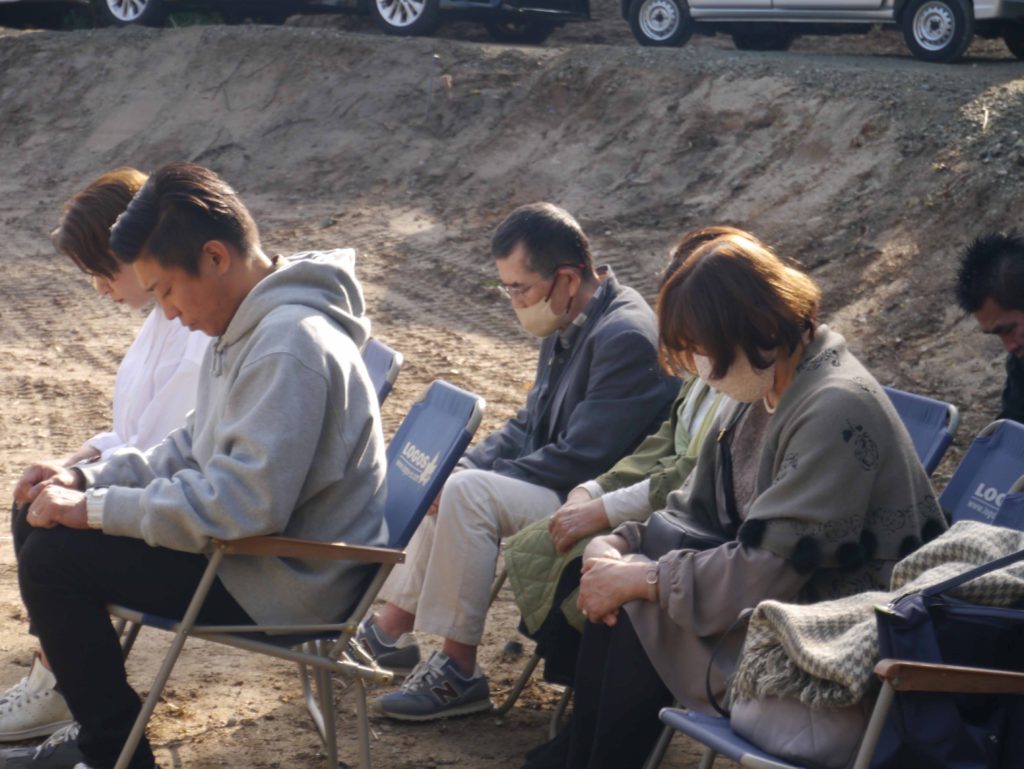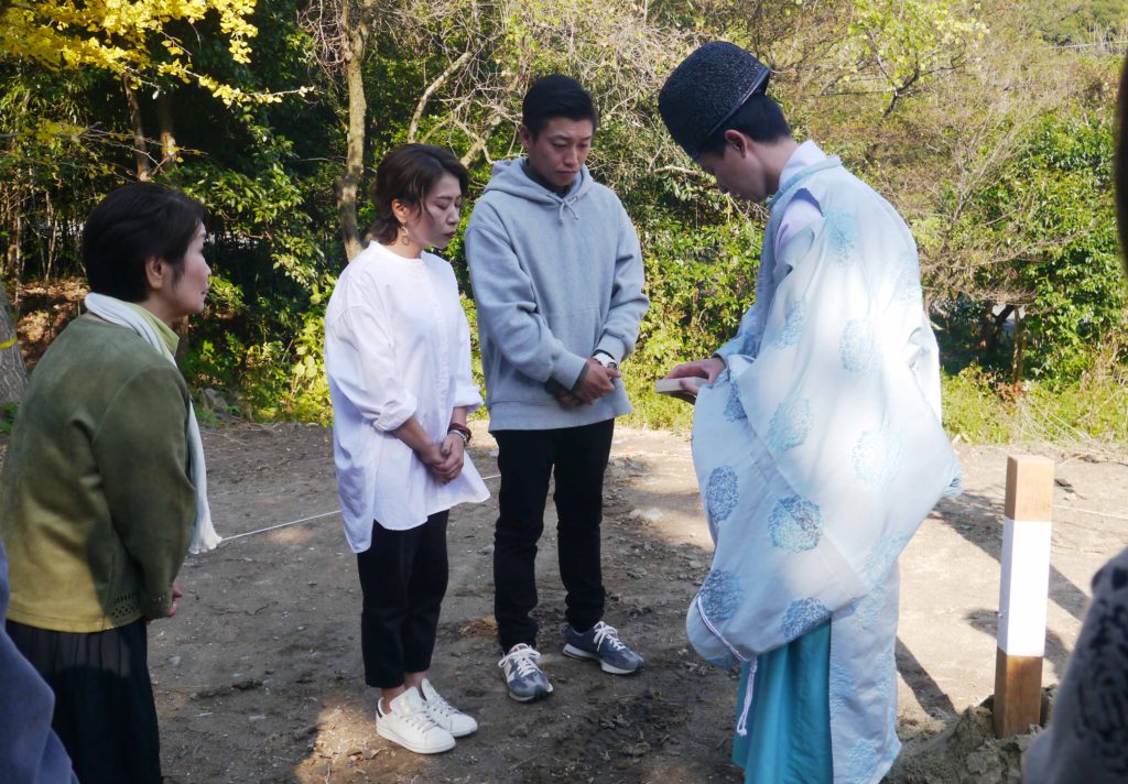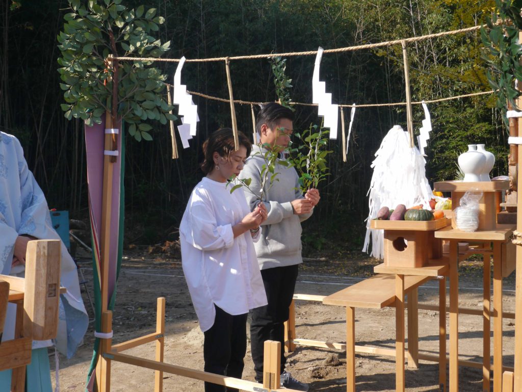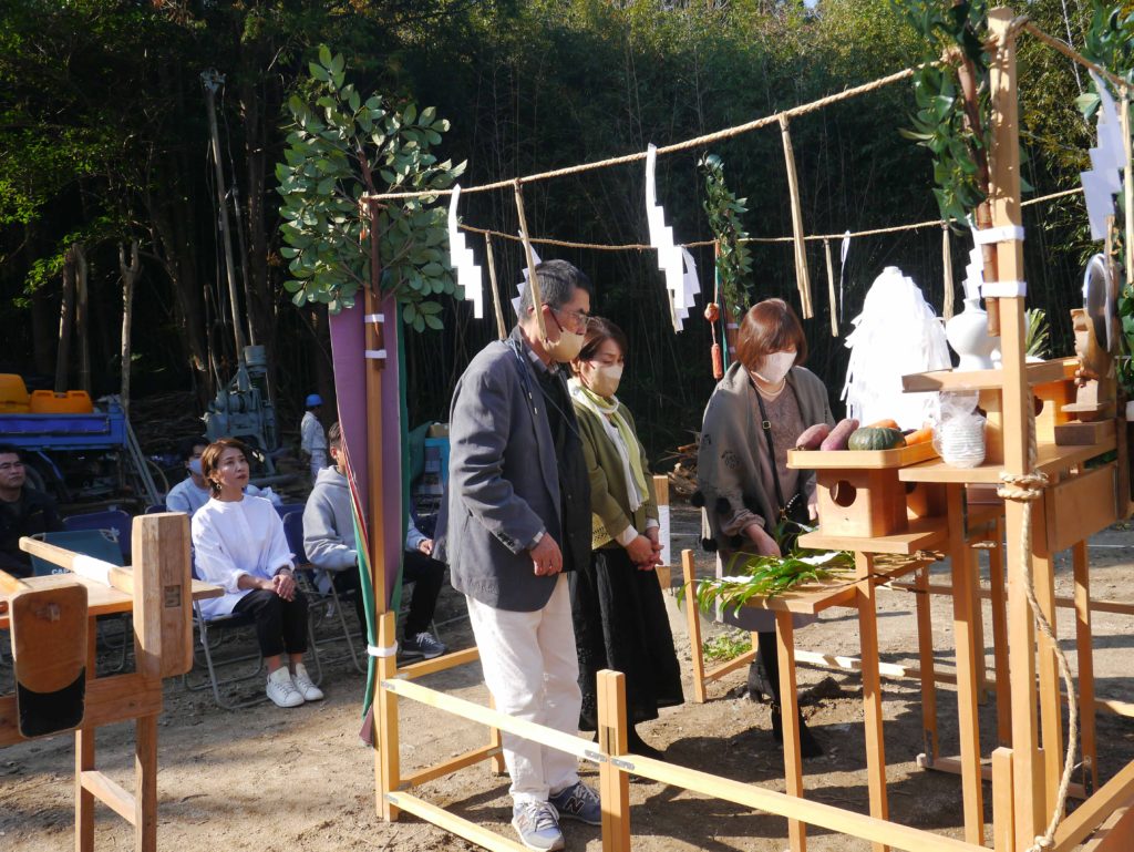 地鎮の儀には、施主様、そして施工会社が初めてその土地に手をつけるという意味があり、敷地の安定と、工事の無事安全を祈願します!