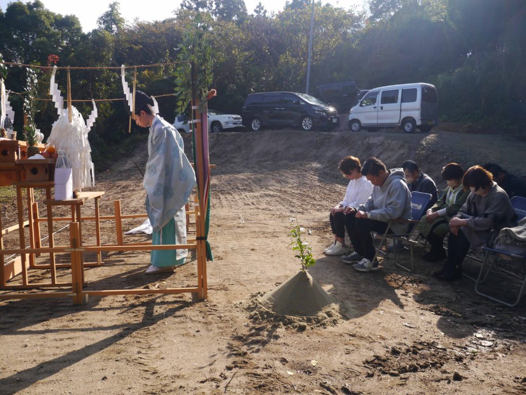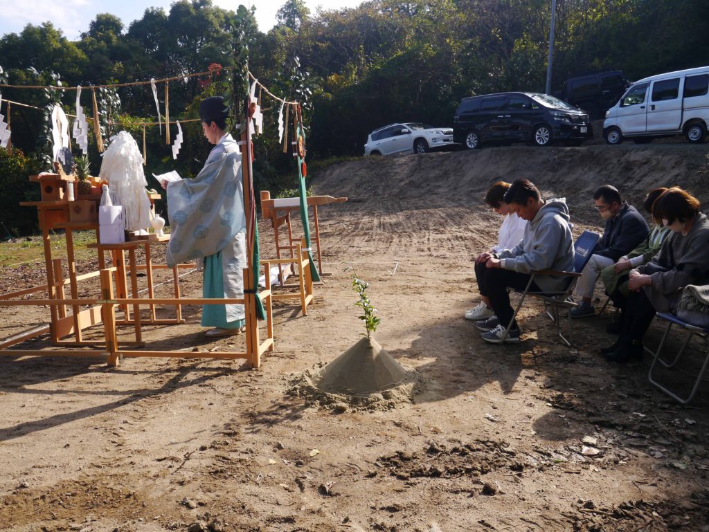 寒い日が続いていた日々の中で、ポカポカ陽気に恵まれた11月の某日、西区今宿にてH様邸の地鎮祭が執り行われました!