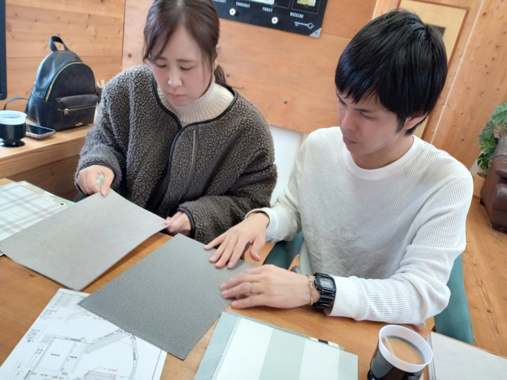 この日の打ち合わせは、クロス(壁紙)CFシート(床材)などです!