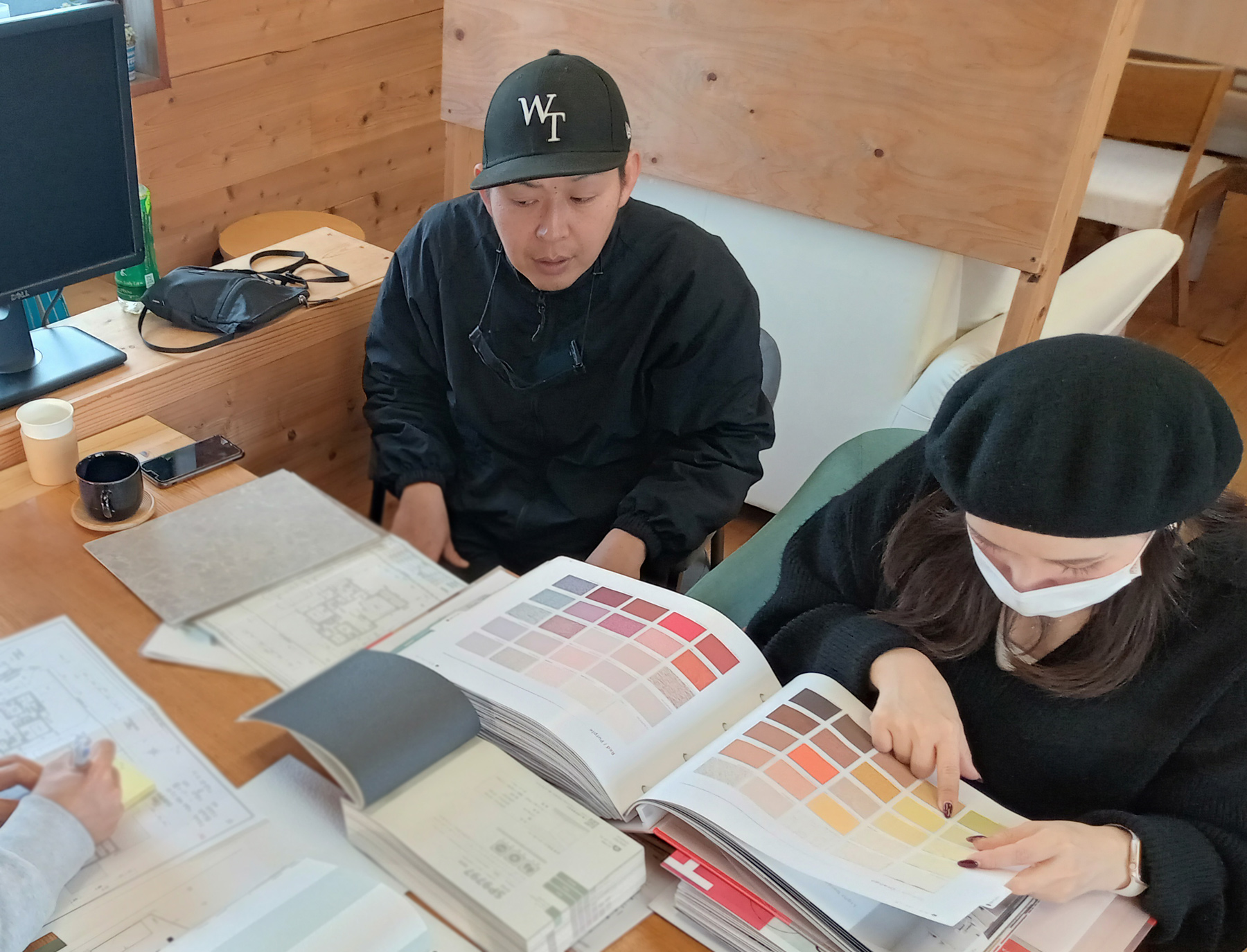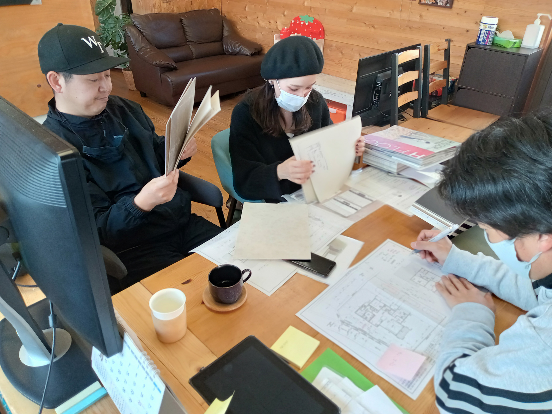 今回、K様との打ち合わせでは、カタログだけでなく、気になるクロスのサンプルを取り寄せていたので、サンプルを見ながら検討しました!