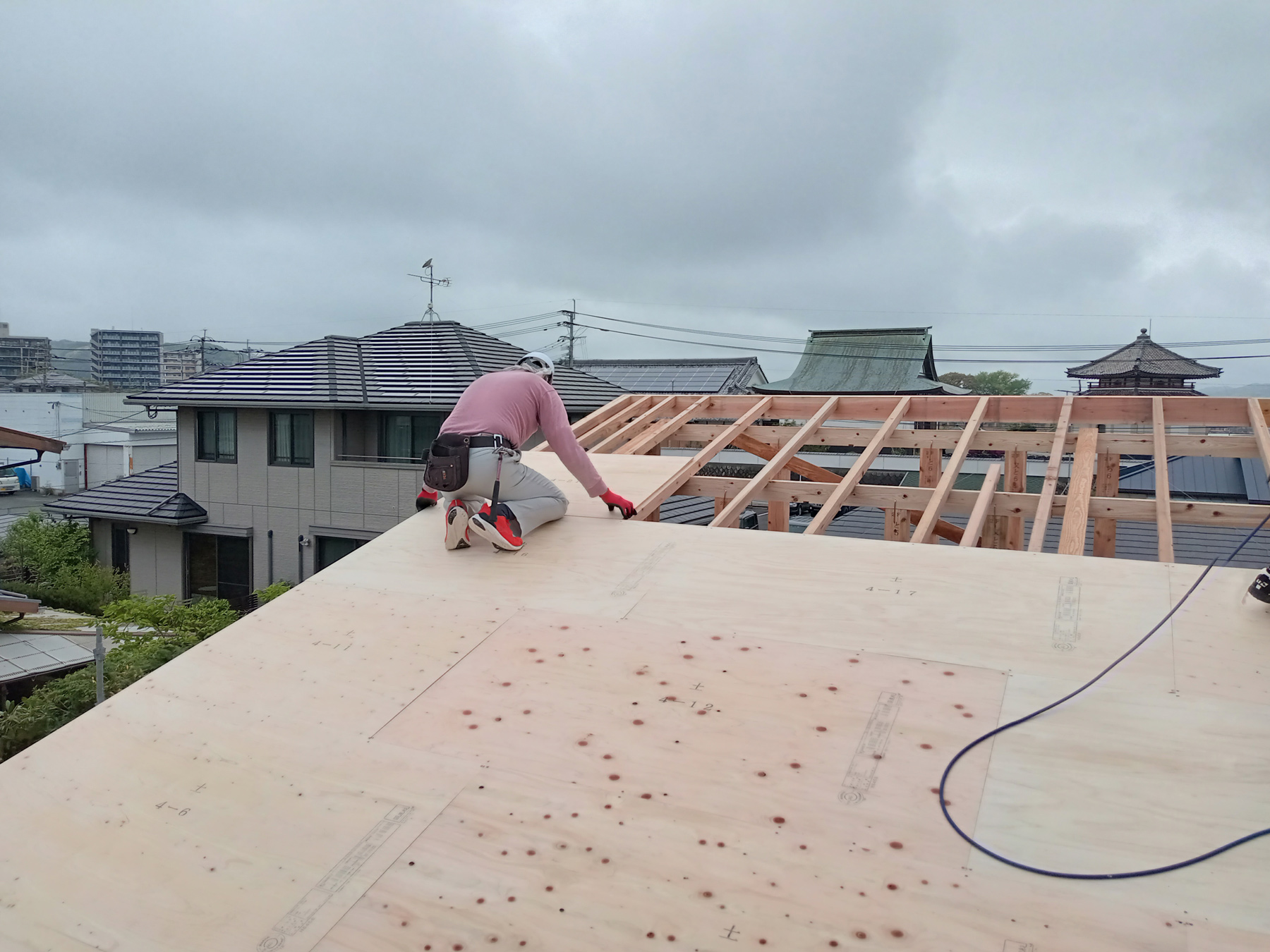 屋根の下地になる野地板を貼っていきます!