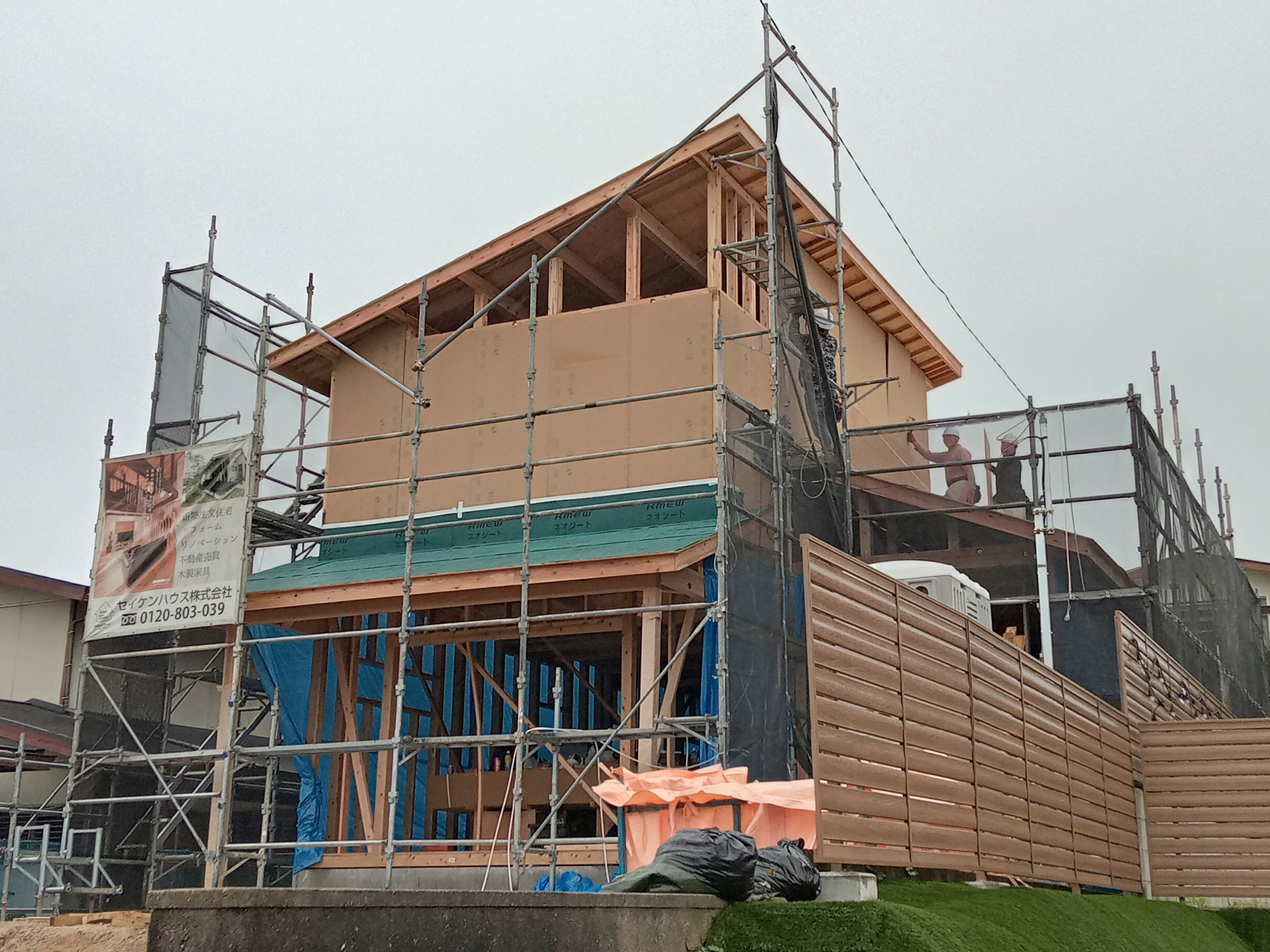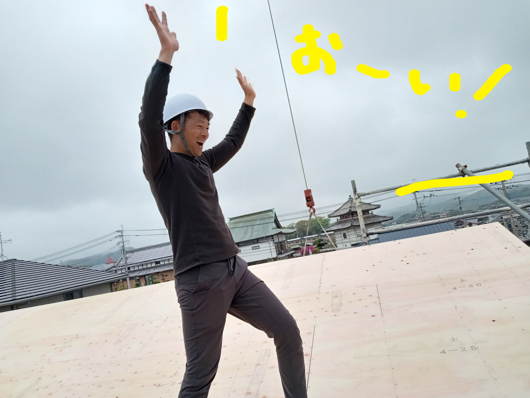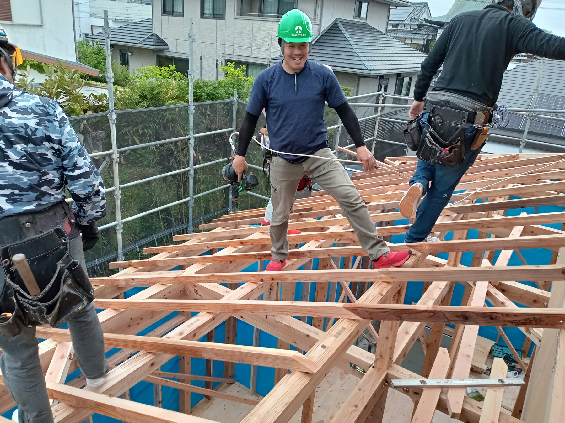 防水シートの設置がすべて終わると、上棟工事、全て終了です!