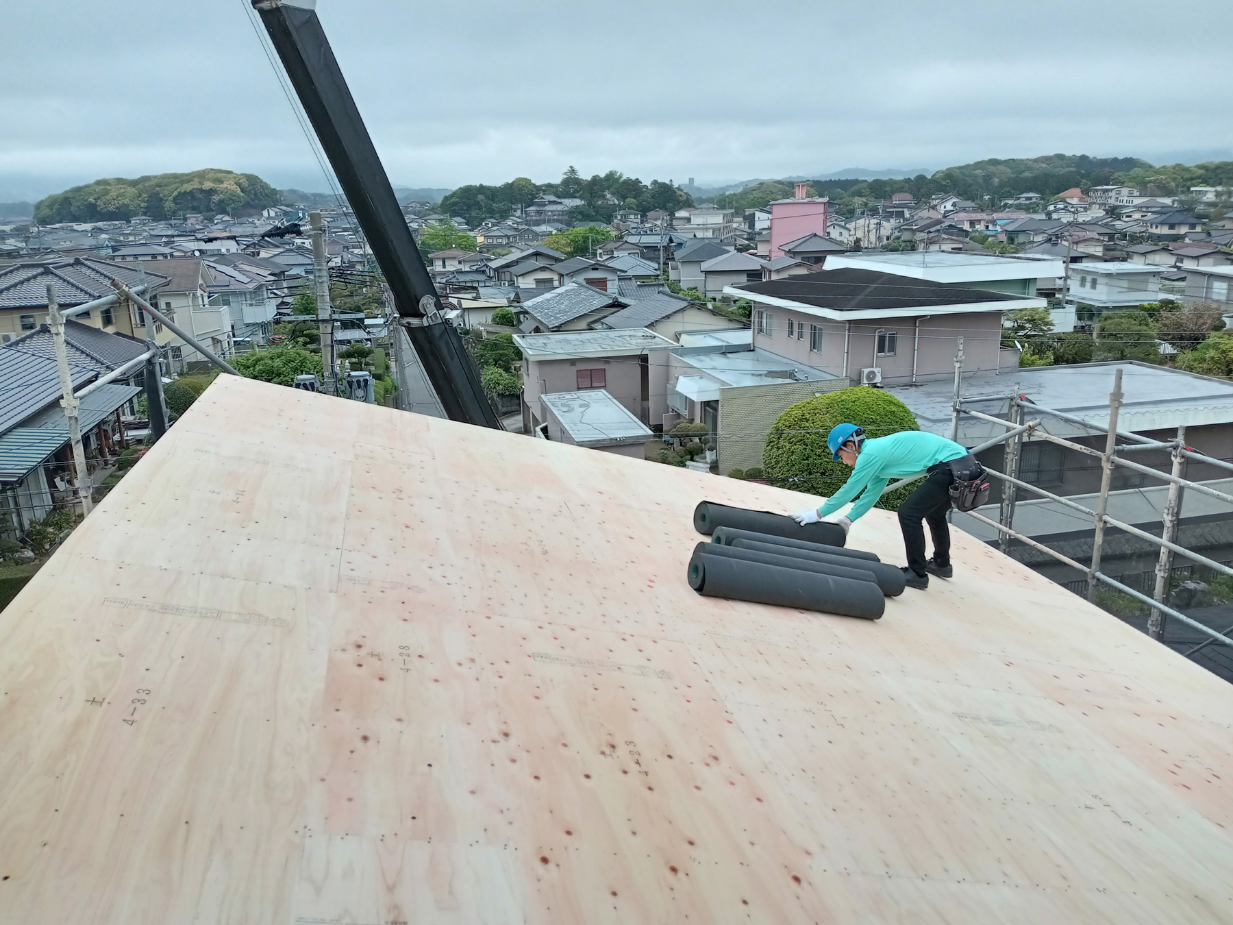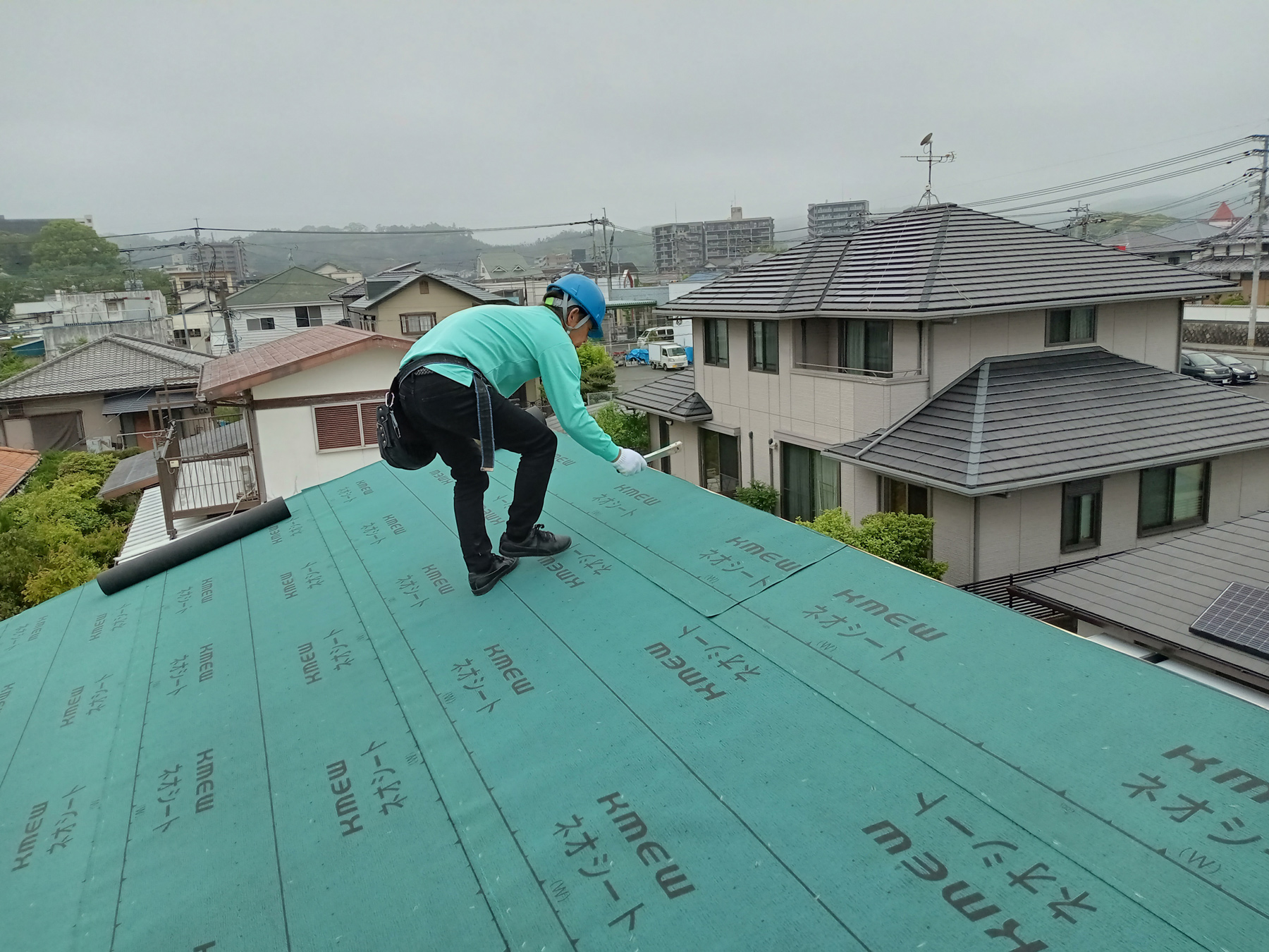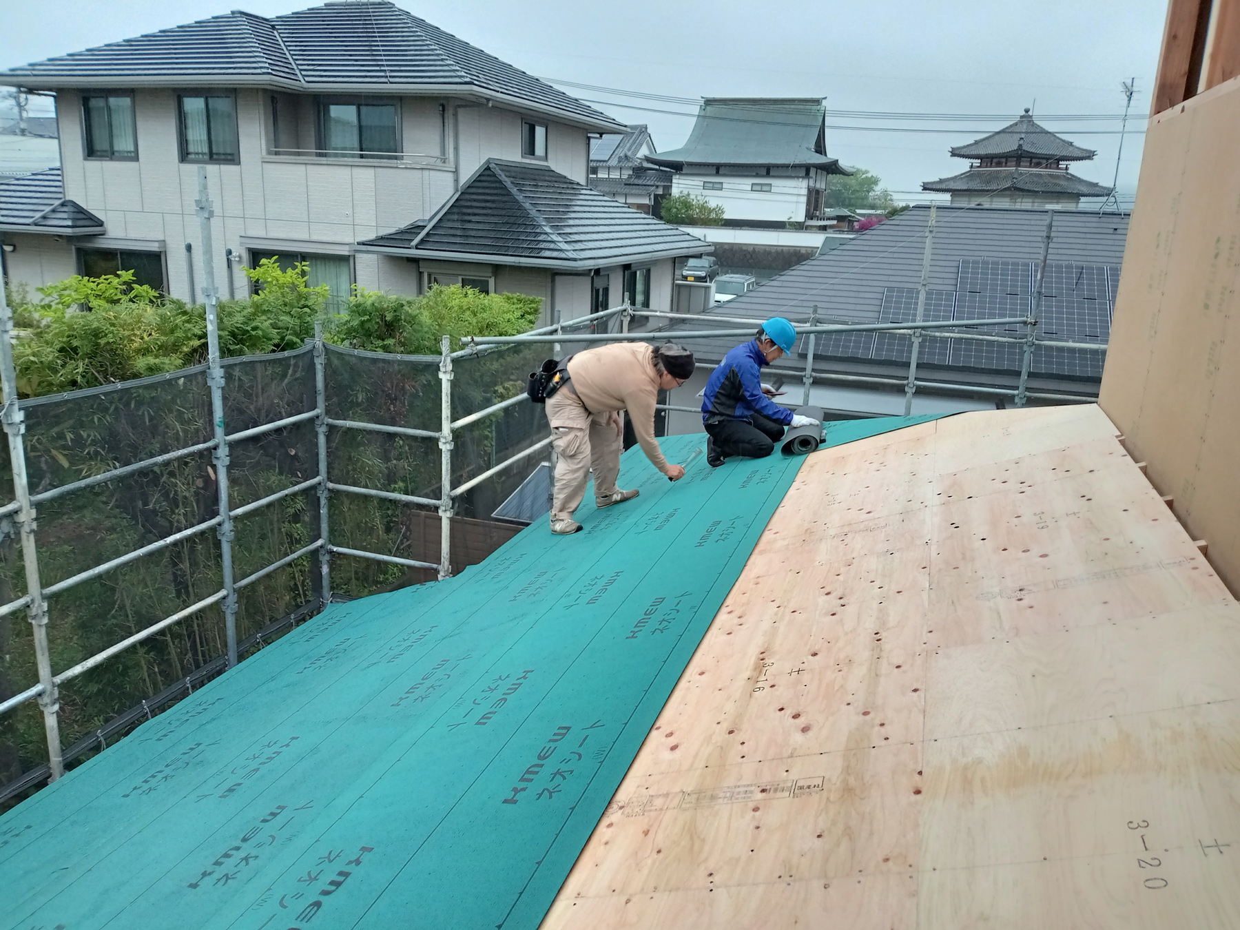 屋根の下地が終わったところで、今度は防水シートを貼っていきます!