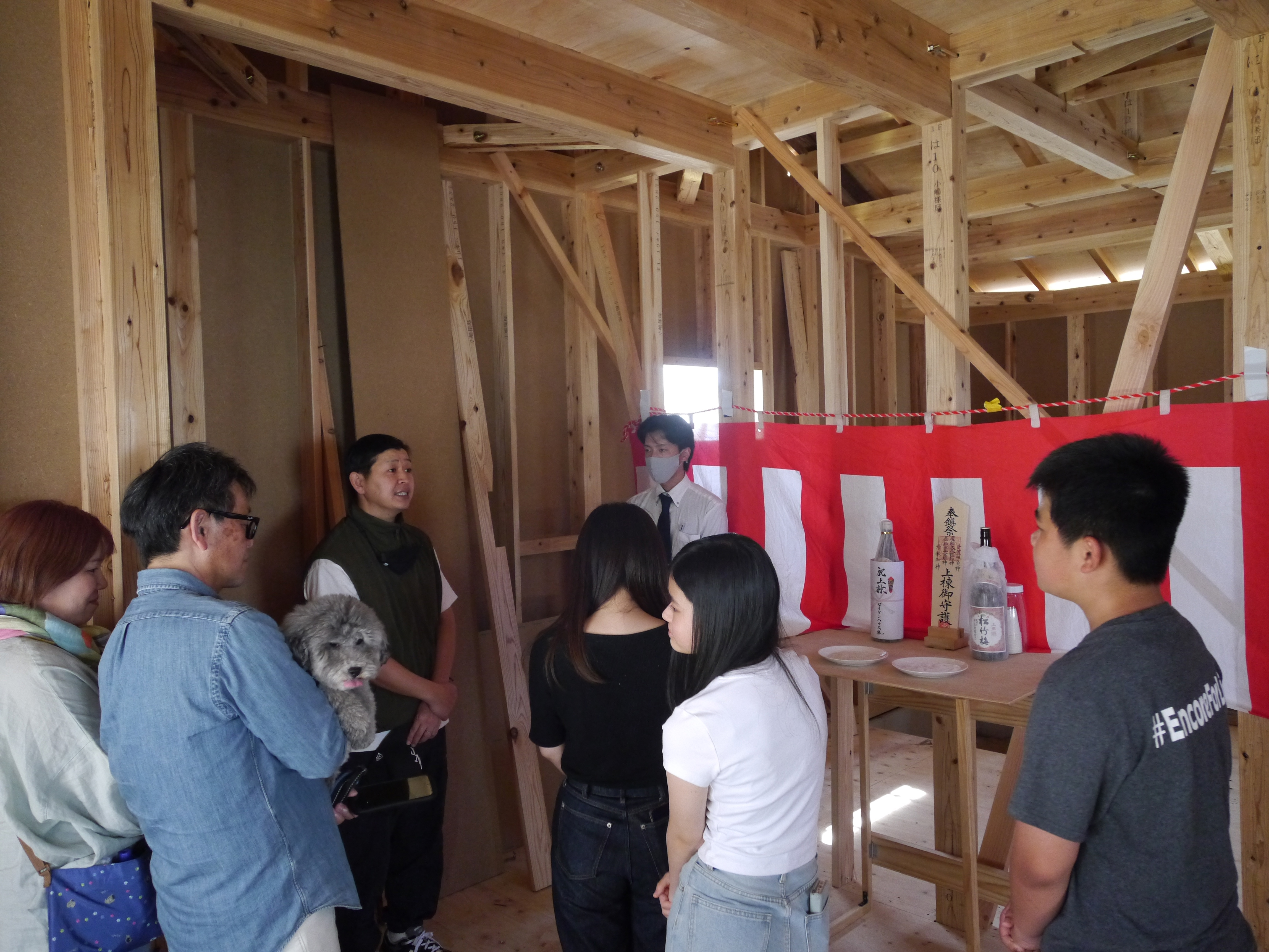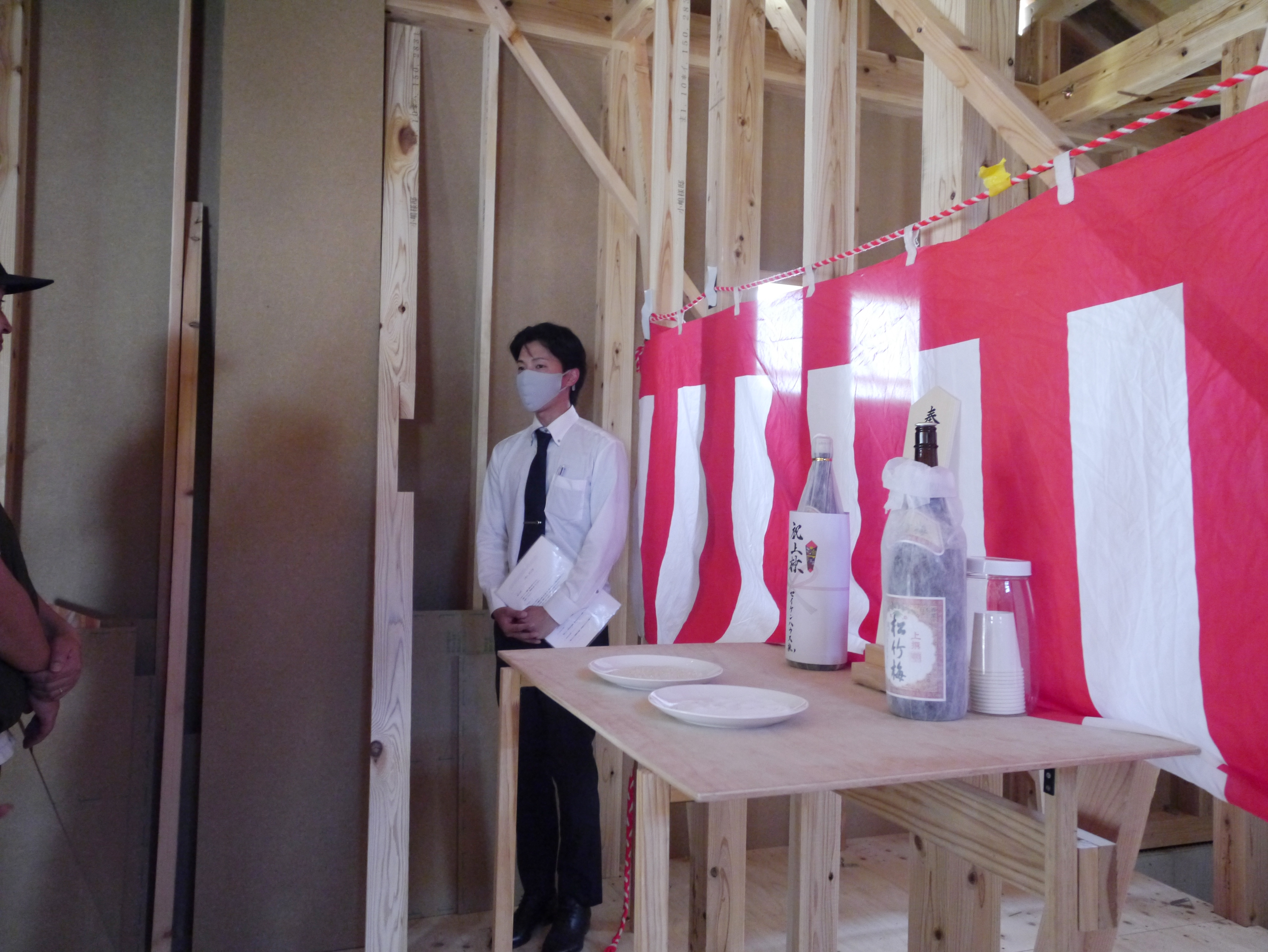上棟式とは、棟上げが無事に終わったことを感謝するとともに、竣工まで工事が無事安全に進むよう、祈願する儀式です!