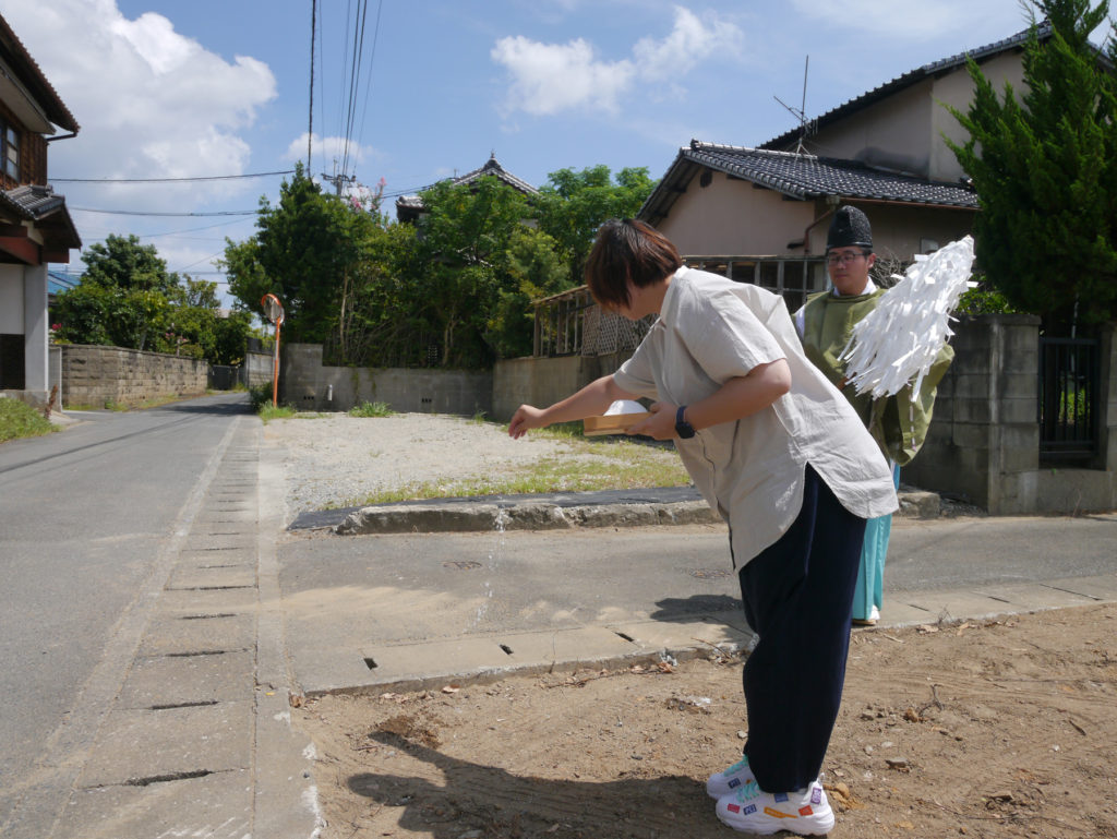 施主様が、お神酒やお塩を撒いて、祓い清めます!