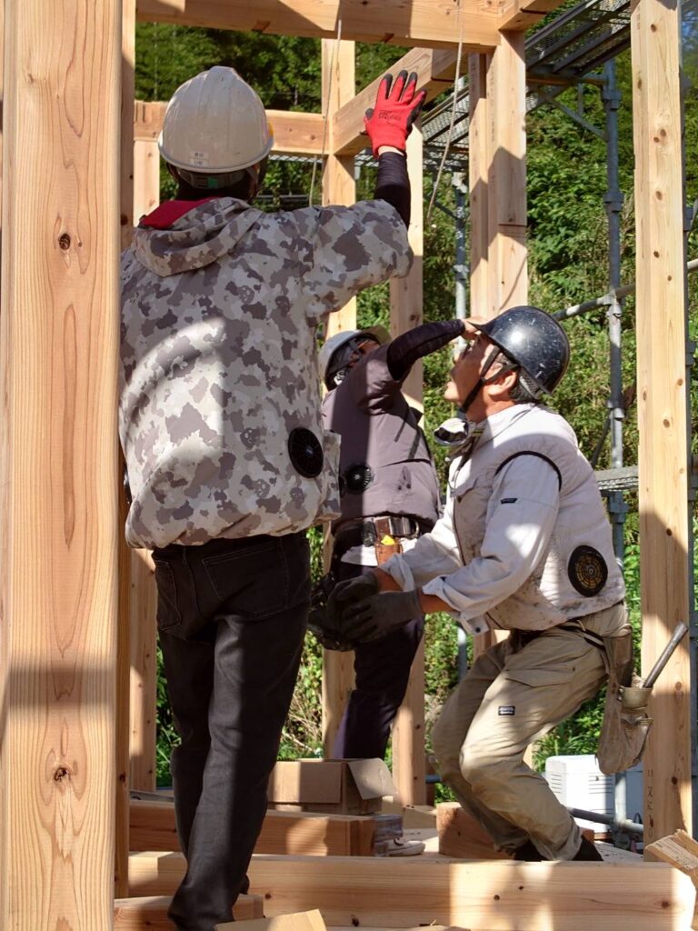 ですが、人数を増やせばスピードが上がるというものではなく、適度な人数と大工さんたちのコンビネーションが大切です!