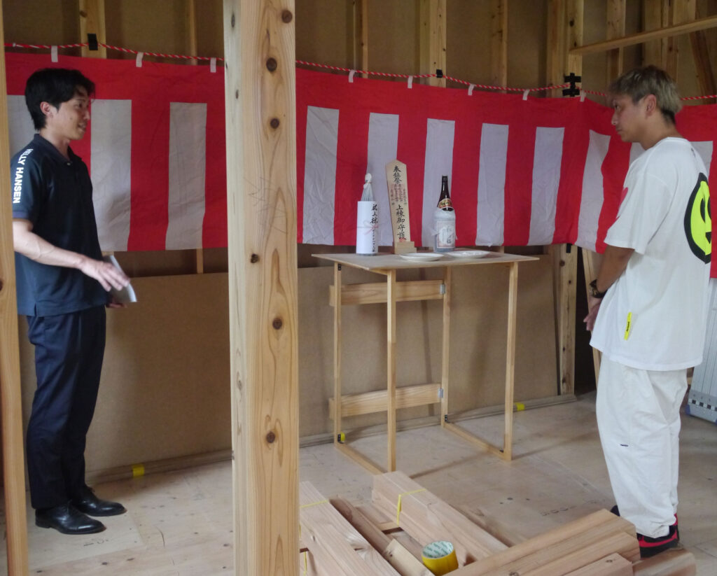 工事が終了したことに感謝し、また竣工まで、建物が無事に完成するように願って、上棟式を行いました!