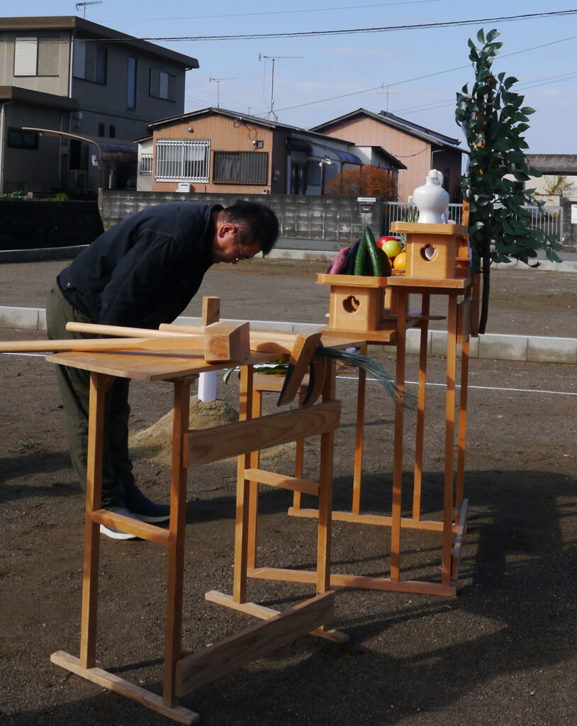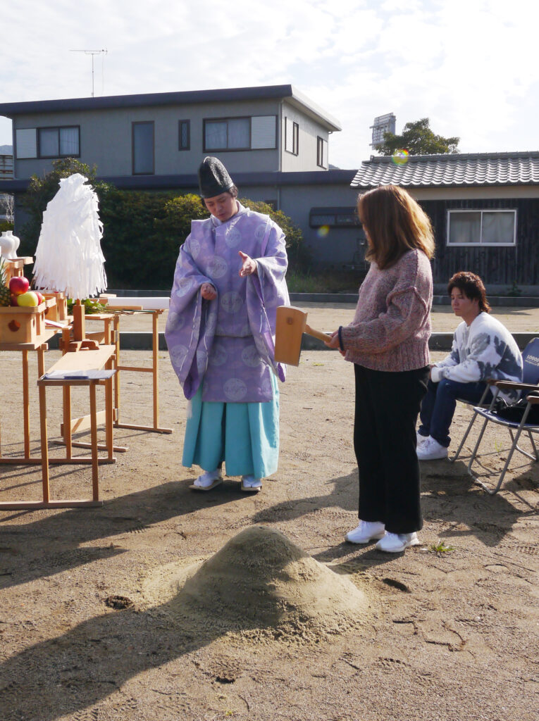 神主さんにお願いするのが一般的で、工事の安全と、竣工後の家の繁栄を祈願するために行います!