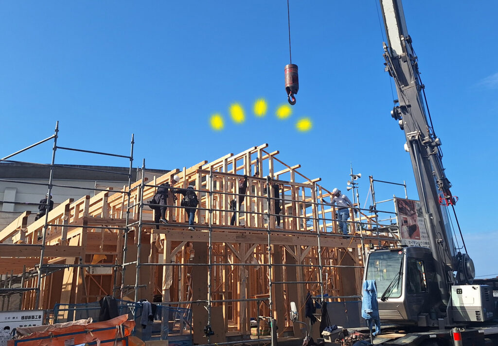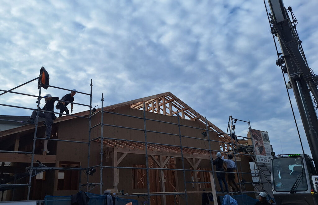 この日の棟上げ工事、まだまだ続きがありますよ!