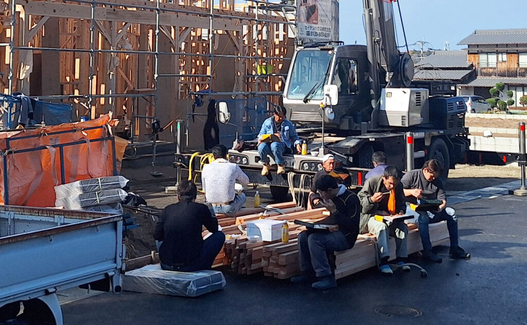 この後、屋根の下地工事まで進みますが、ちょうどお昼時!